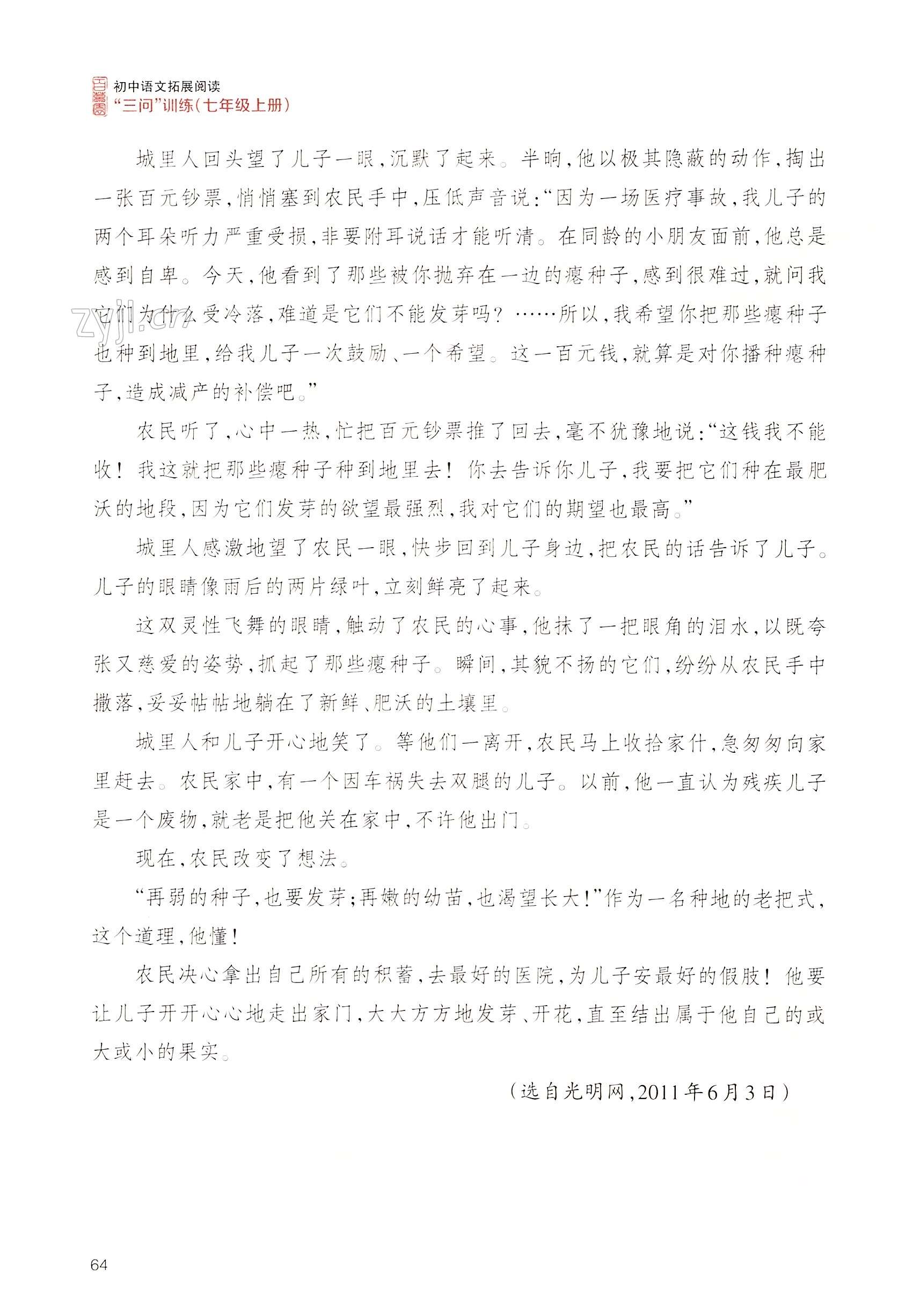 注:目前有些书本章节名称可能整理的还不是很完善,但都是按照顺序排列的,请同学们按照顺序仔细查找。练习册 2022年拓展阅读三问训练七年级语文上册人教版 答案主要是用来给同学们做完题方便对答案用的,请勿直接抄袭。