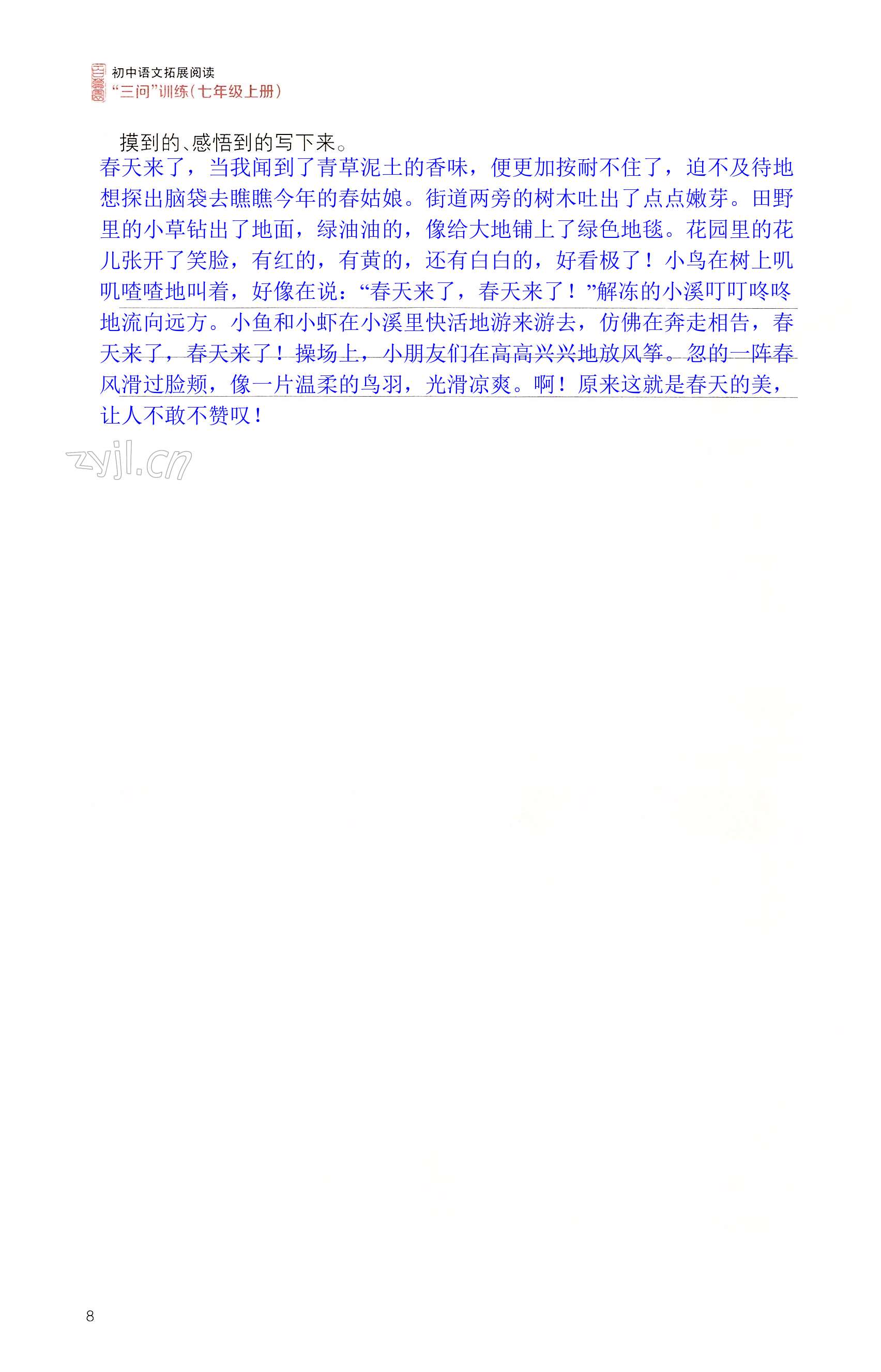 注:目前有些书本章节名称可能整理的还不是很完善,但都是按照顺序排列的,请同学们按照顺序仔细查找。练习册 2022年拓展阅读三问训练七年级语文上册人教版 答案主要是用来给同学们做完题方便对答案用的,请勿直接抄袭。