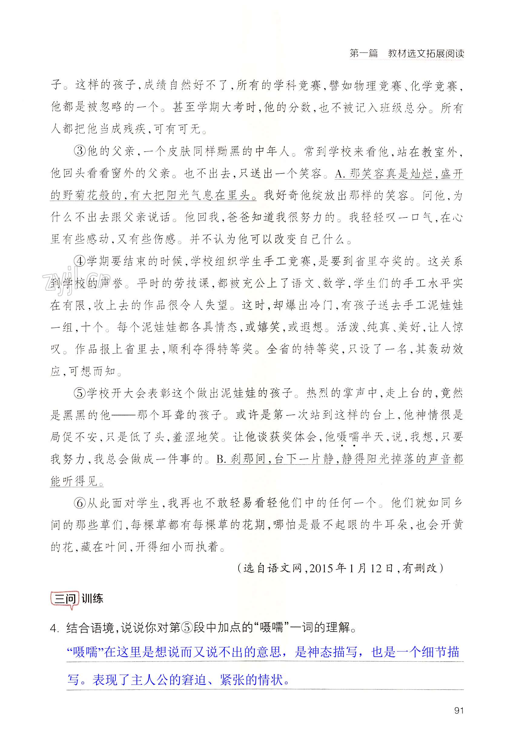 2022年拓展阅读三问训练七年级语文上册人教版