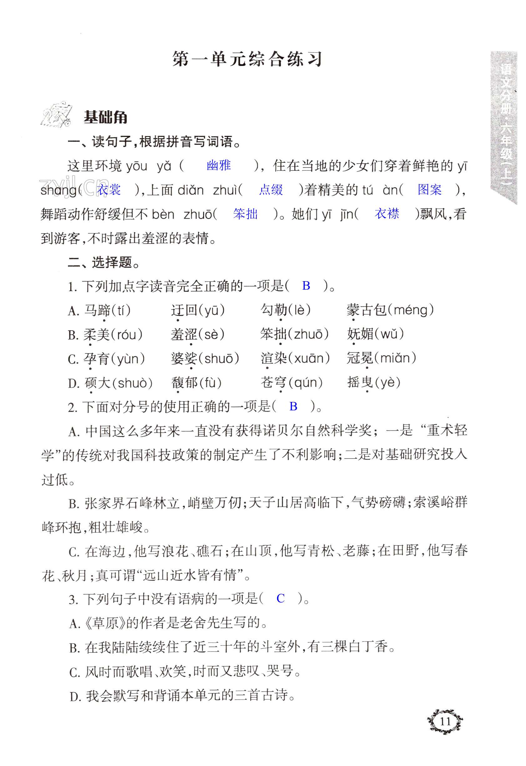 注:目前有些书本章节名称可能整理的还不是很完善,但都是按照顺序排列的,请同学们按照顺序仔细查找。练习册 2022年配套练习浙江工商大学出版社六年级语文上册人教版 答案主要是用来给同学们做完题方便对答案用的,请勿直接抄袭。