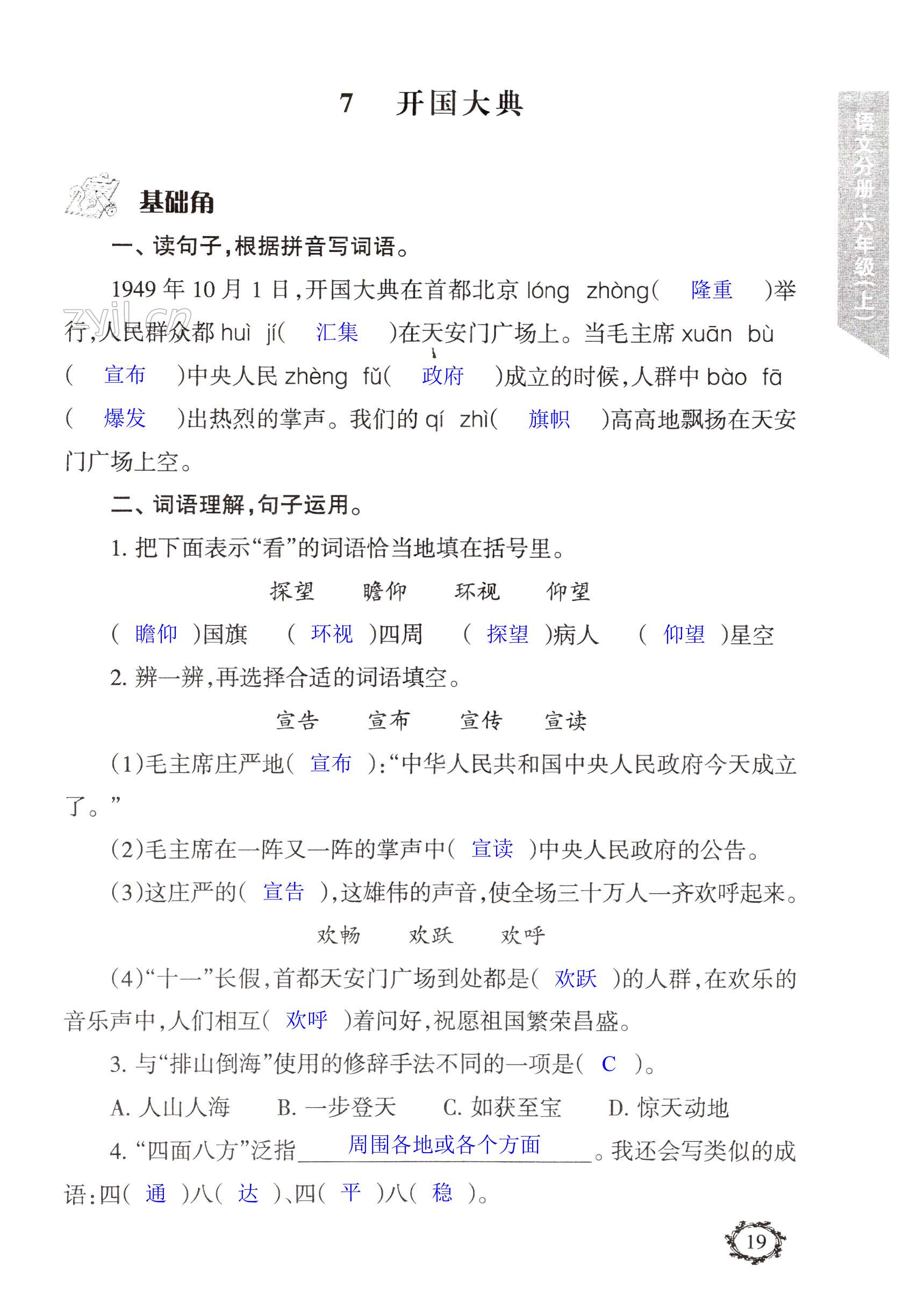 注:目前有些书本章节名称可能整理的还不是很完善,但都是按照顺序排列的,请同学们按照顺序仔细查找。练习册 2022年配套练习浙江工商大学出版社六年级语文上册人教版 答案主要是用来给同学们做完题方便对答案用的,请勿直接抄袭。