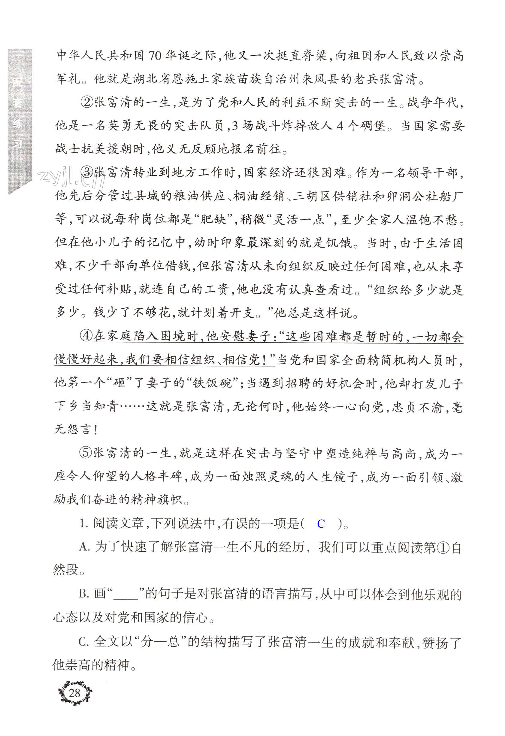 2022年配套练习浙江工商大学出版社六年级语文上册人教版