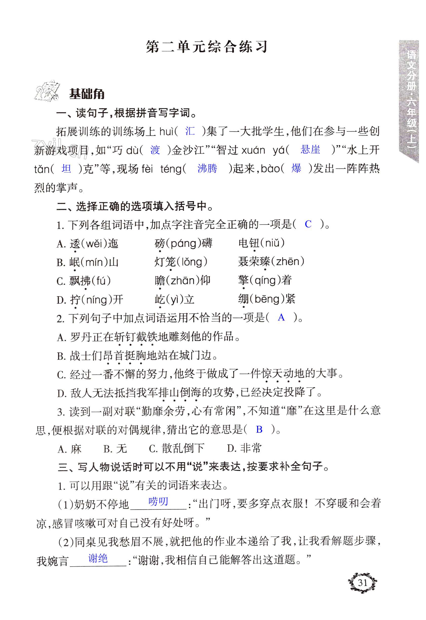 注:目前有些书本章节名称可能整理的还不是很完善,但都是按照顺序排列的,请同学们按照顺序仔细查找。练习册 2022年配套练习浙江工商大学出版社六年级语文上册人教版 答案主要是用来给同学们做完题方便对答案用的,请勿直接抄袭。