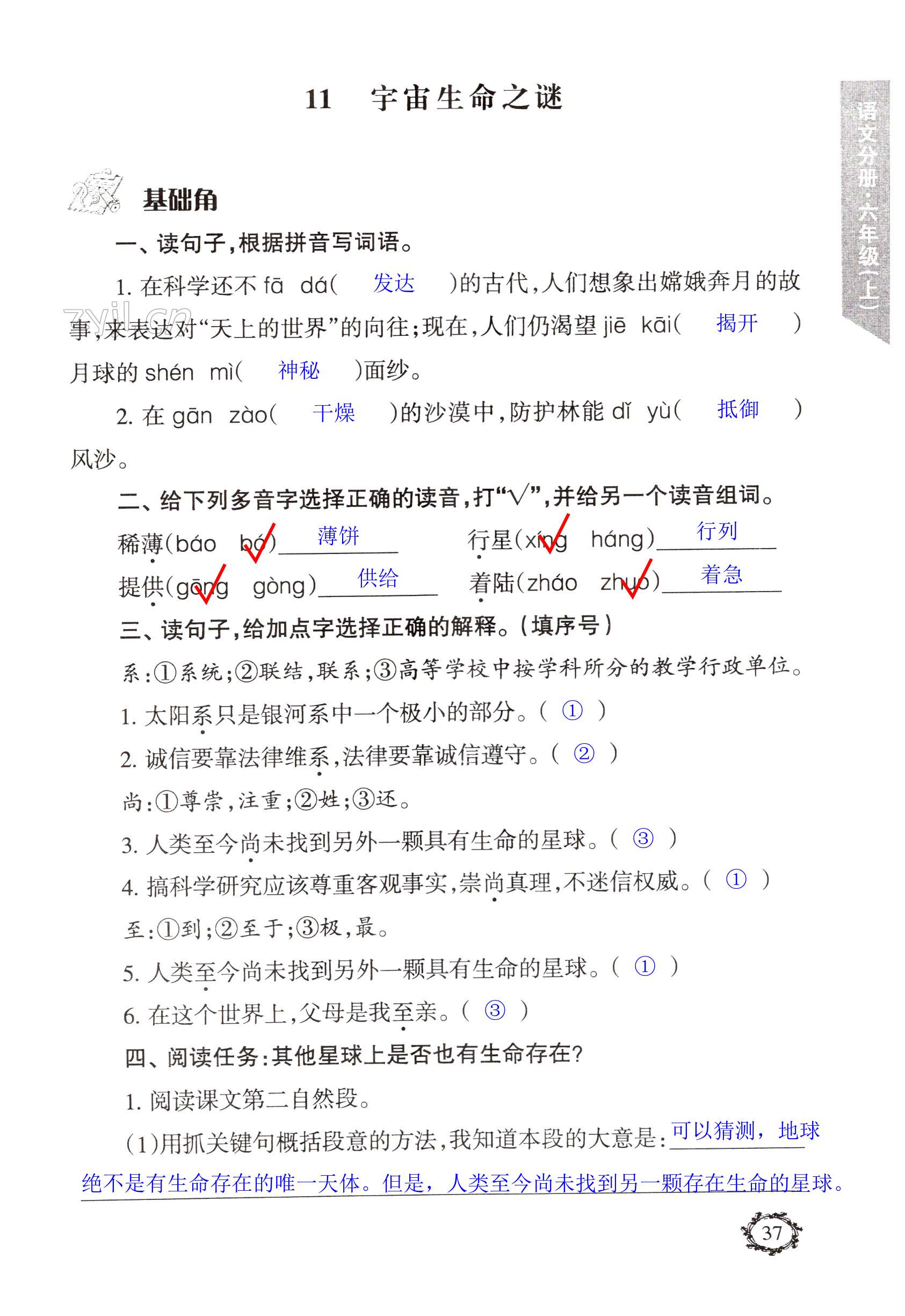 注:目前有些书本章节名称可能整理的还不是很完善,但都是按照顺序排列的,请同学们按照顺序仔细查找。练习册 2022年配套练习浙江工商大学出版社六年级语文上册人教版 答案主要是用来给同学们做完题方便对答案用的,请勿直接抄袭。