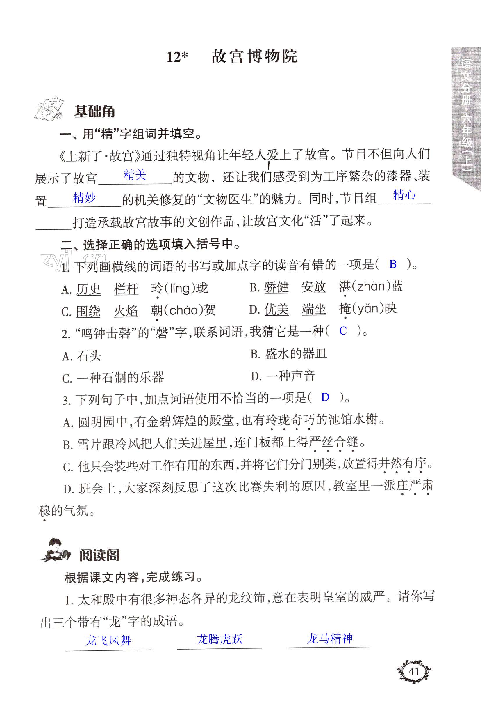 注:目前有些书本章节名称可能整理的还不是很完善,但都是按照顺序排列的,请同学们按照顺序仔细查找。练习册 2022年配套练习浙江工商大学出版社六年级语文上册人教版 答案主要是用来给同学们做完题方便对答案用的,请勿直接抄袭。