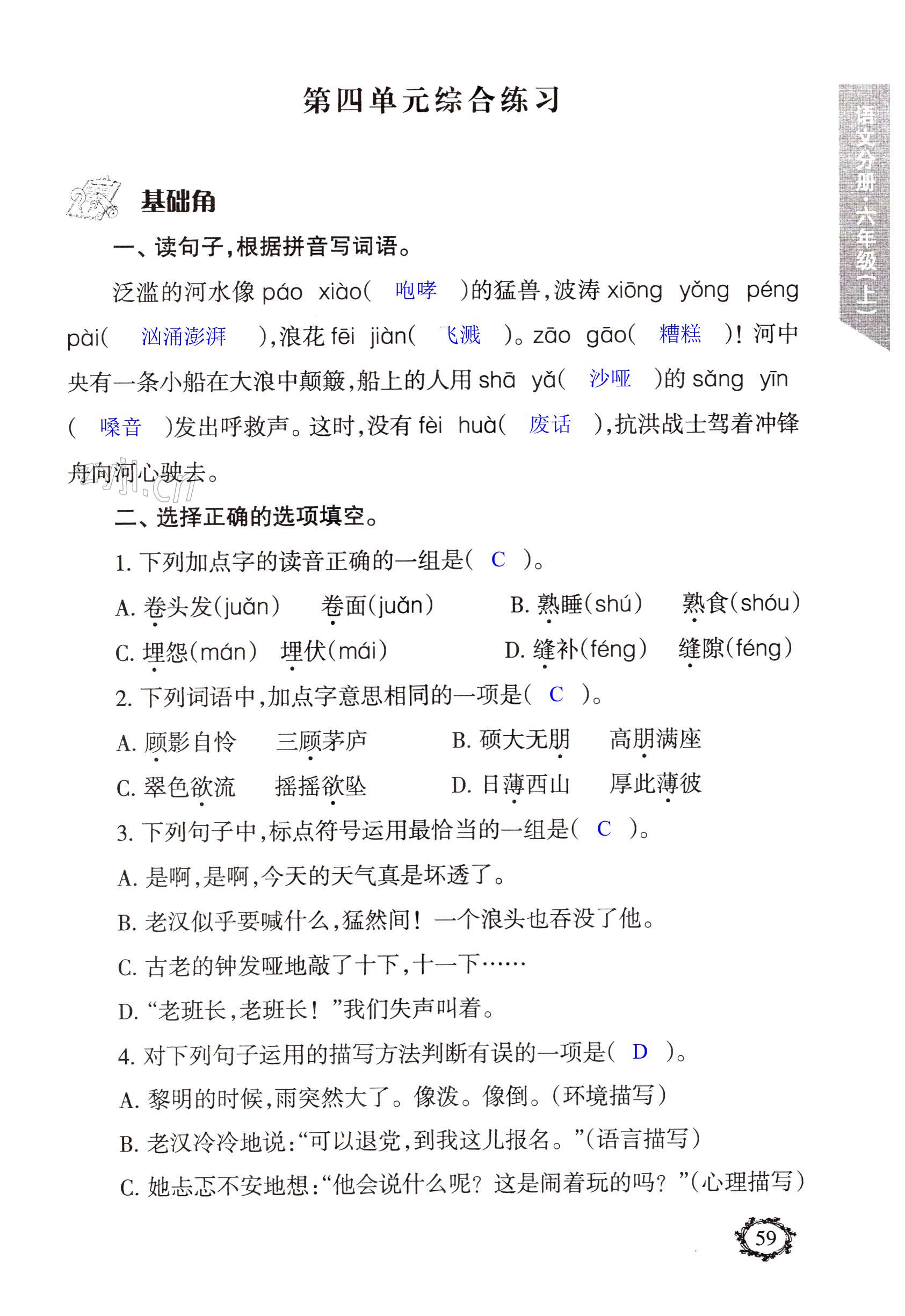 注:目前有些书本章节名称可能整理的还不是很完善,但都是按照顺序排列的,请同学们按照顺序仔细查找。练习册 2022年配套练习浙江工商大学出版社六年级语文上册人教版 答案主要是用来给同学们做完题方便对答案用的,请勿直接抄袭。