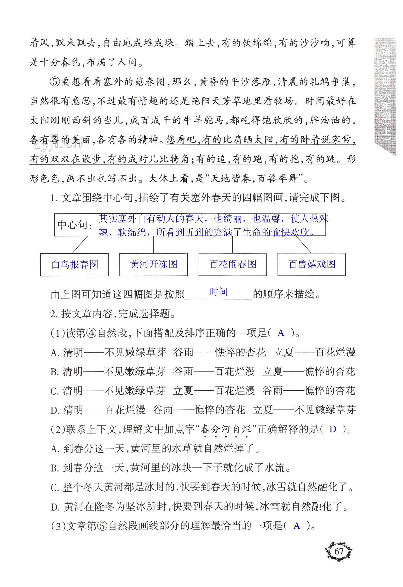 注:目前有些书本章节名称可能整理的还不是很完善,但都是按照顺序排列的,请同学们按照顺序仔细查找。练习册 2022年配套练习浙江工商大学出版社六年级语文上册人教版 答案主要是用来给同学们做完题方便对答案用的,请勿直接抄袭。