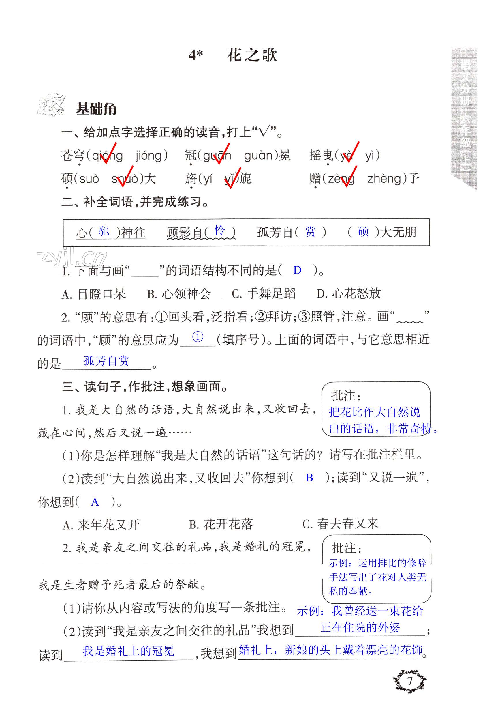注:目前有些书本章节名称可能整理的还不是很完善,但都是按照顺序排列的,请同学们按照顺序仔细查找。练习册 2022年配套练习浙江工商大学出版社六年级语文上册人教版 答案主要是用来给同学们做完题方便对答案用的,请勿直接抄袭。