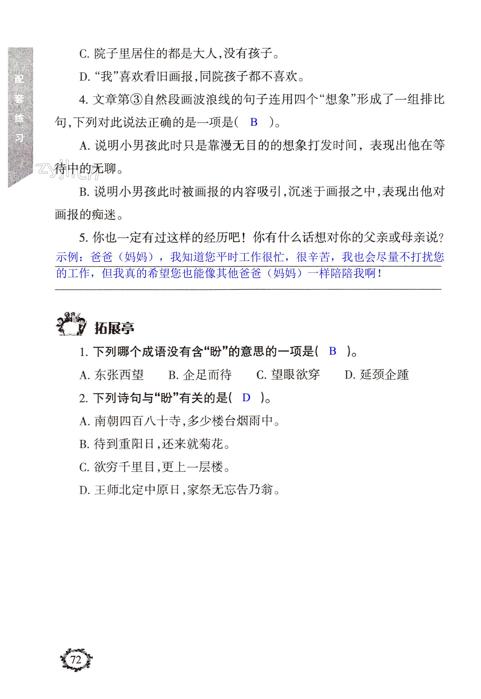 注:目前有些书本章节名称可能整理的还不是很完善,但都是按照顺序排列的,请同学们按照顺序仔细查找。练习册 2022年配套练习浙江工商大学出版社六年级语文上册人教版 答案主要是用来给同学们做完题方便对答案用的,请勿直接抄袭。
