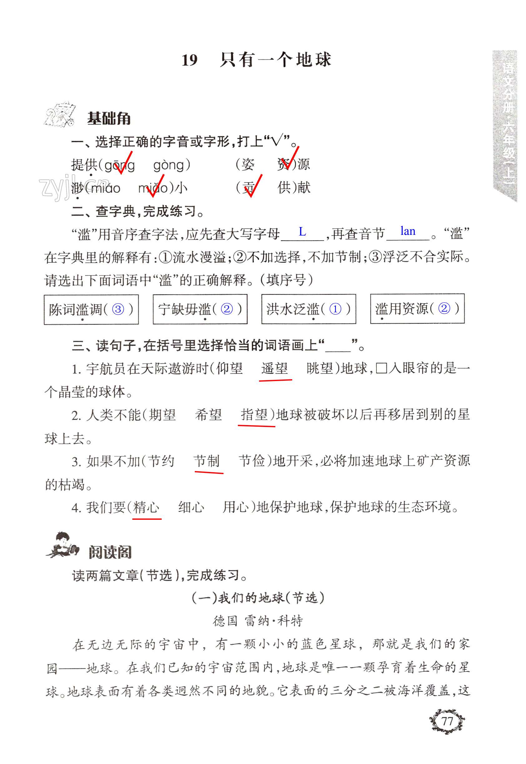 注:目前有些书本章节名称可能整理的还不是很完善,但都是按照顺序排列的,请同学们按照顺序仔细查找。练习册 2022年配套练习浙江工商大学出版社六年级语文上册人教版 答案主要是用来给同学们做完题方便对答案用的,请勿直接抄袭。