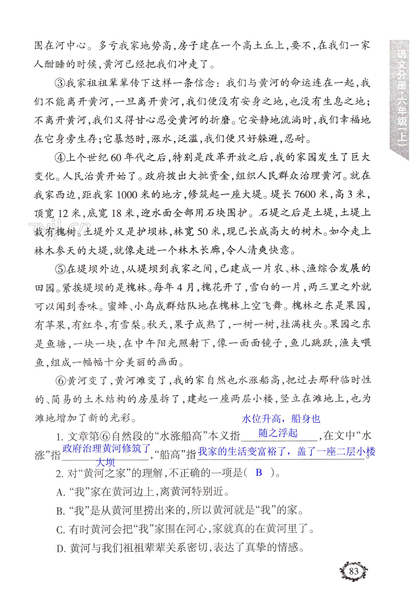 注:目前有些书本章节名称可能整理的还不是很完善,但都是按照顺序排列的,请同学们按照顺序仔细查找。练习册 2022年配套练习浙江工商大学出版社六年级语文上册人教版 答案主要是用来给同学们做完题方便对答案用的,请勿直接抄袭。
