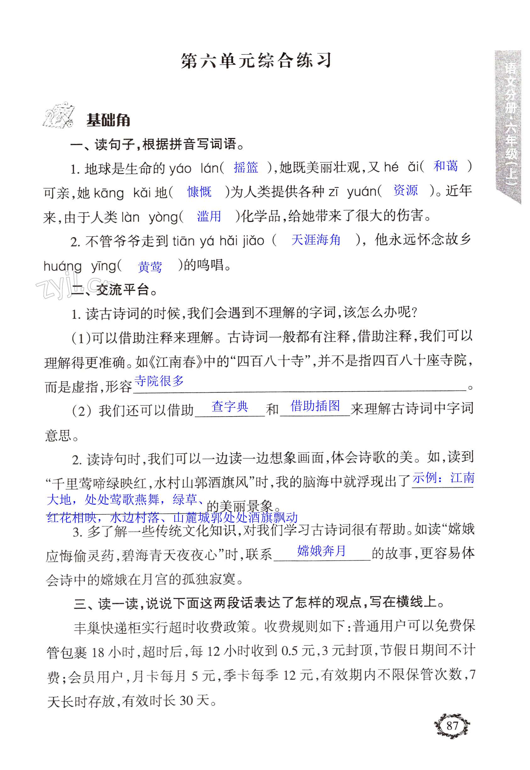 注:目前有些书本章节名称可能整理的还不是很完善,但都是按照顺序排列的,请同学们按照顺序仔细查找。练习册 2022年配套练习浙江工商大学出版社六年级语文上册人教版 答案主要是用来给同学们做完题方便对答案用的,请勿直接抄袭。