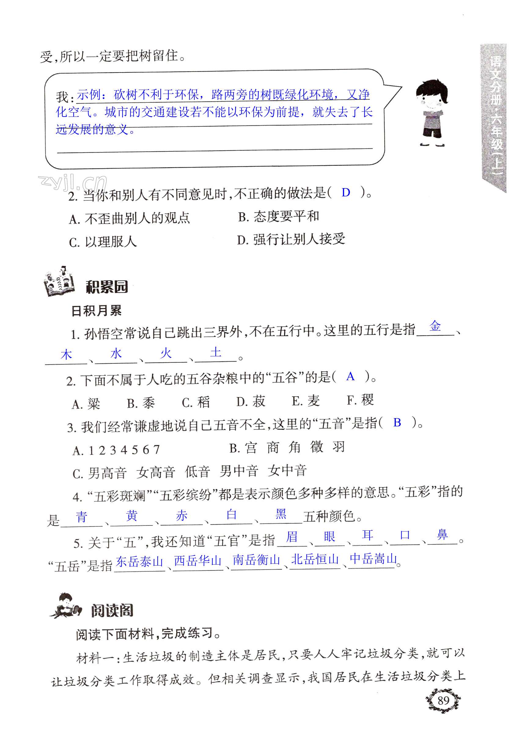注:目前有些书本章节名称可能整理的还不是很完善,但都是按照顺序排列的,请同学们按照顺序仔细查找。练习册 2022年配套练习浙江工商大学出版社六年级语文上册人教版 答案主要是用来给同学们做完题方便对答案用的,请勿直接抄袭。