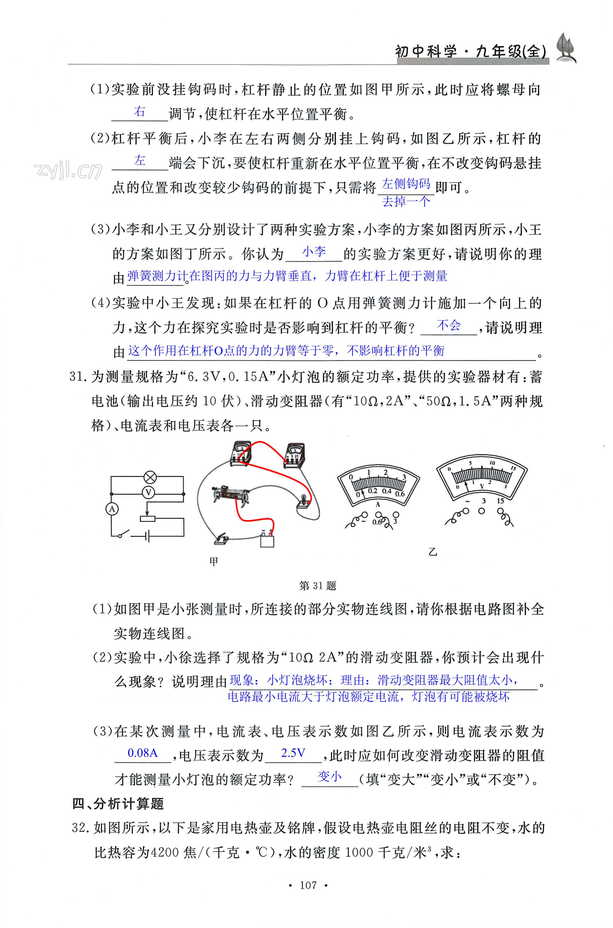 注:目前有些书本章节名称可能整理的还不是很完善,但都是按照顺序排列的,请同学们按照顺序仔细查找。练习册 2022年课时精练九年级科学全一册浙教版 答案主要是用来给同学们做完题方便对答案用的,请勿直接抄袭。