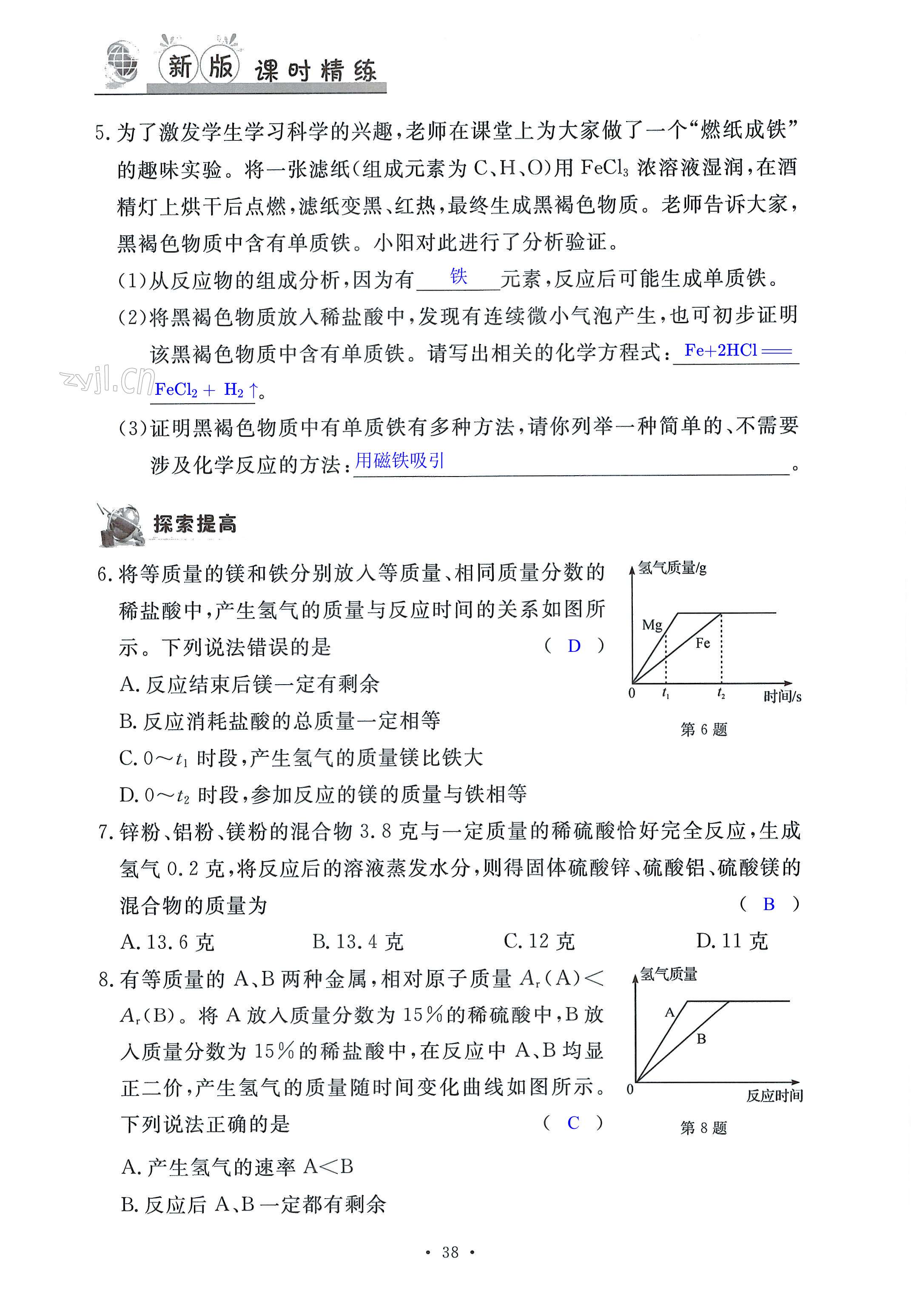 注:目前有些书本章节名称可能整理的还不是很完善,但都是按照顺序排列的,请同学们按照顺序仔细查找。练习册 2022年课时精练九年级科学全一册浙教版 答案主要是用来给同学们做完题方便对答案用的,请勿直接抄袭。