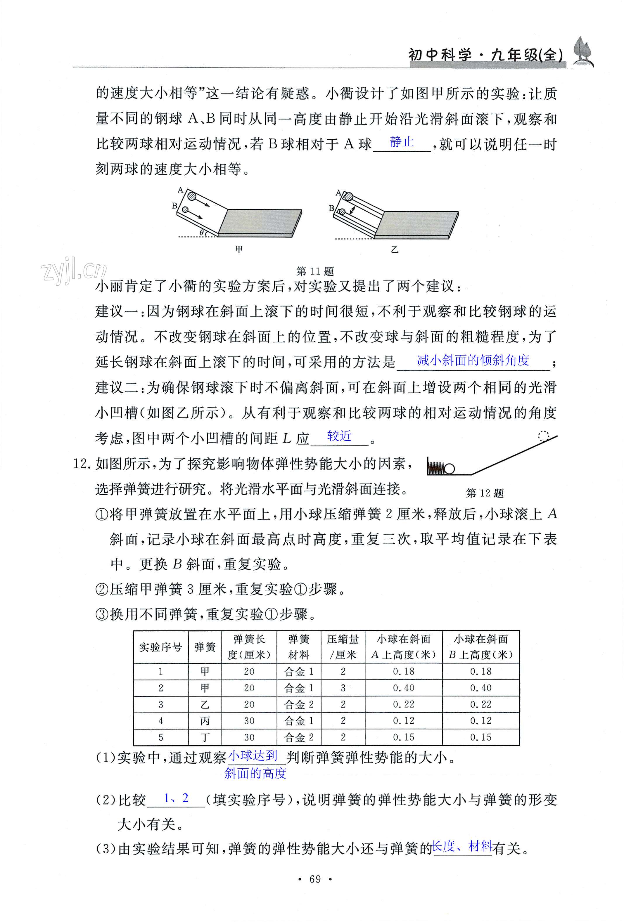 注:目前有些书本章节名称可能整理的还不是很完善,但都是按照顺序排列的,请同学们按照顺序仔细查找。练习册 2022年课时精练九年级科学全一册浙教版 答案主要是用来给同学们做完题方便对答案用的,请勿直接抄袭。