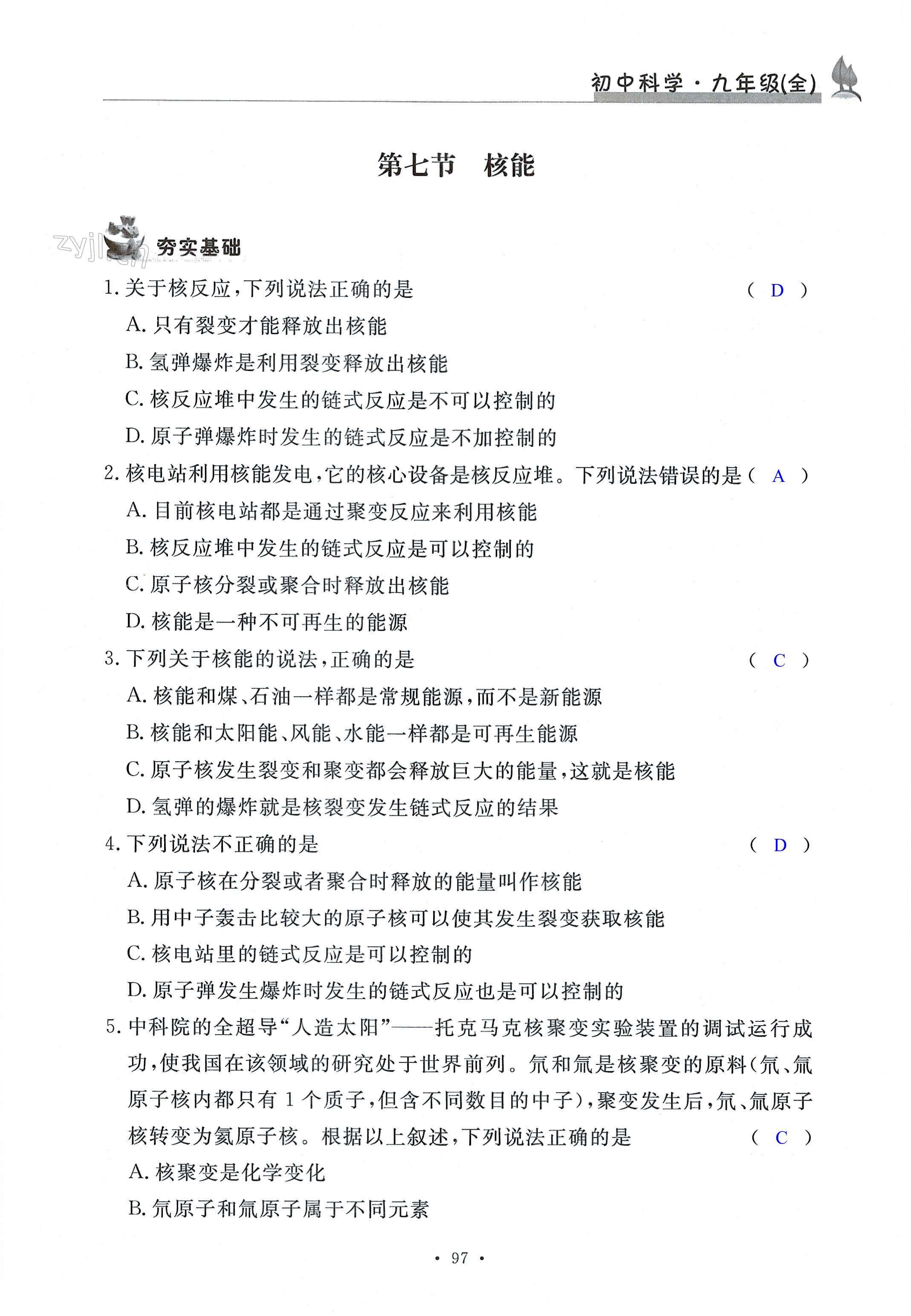 注:目前有些书本章节名称可能整理的还不是很完善,但都是按照顺序排列的,请同学们按照顺序仔细查找。练习册 2022年课时精练九年级科学全一册浙教版 答案主要是用来给同学们做完题方便对答案用的,请勿直接抄袭。