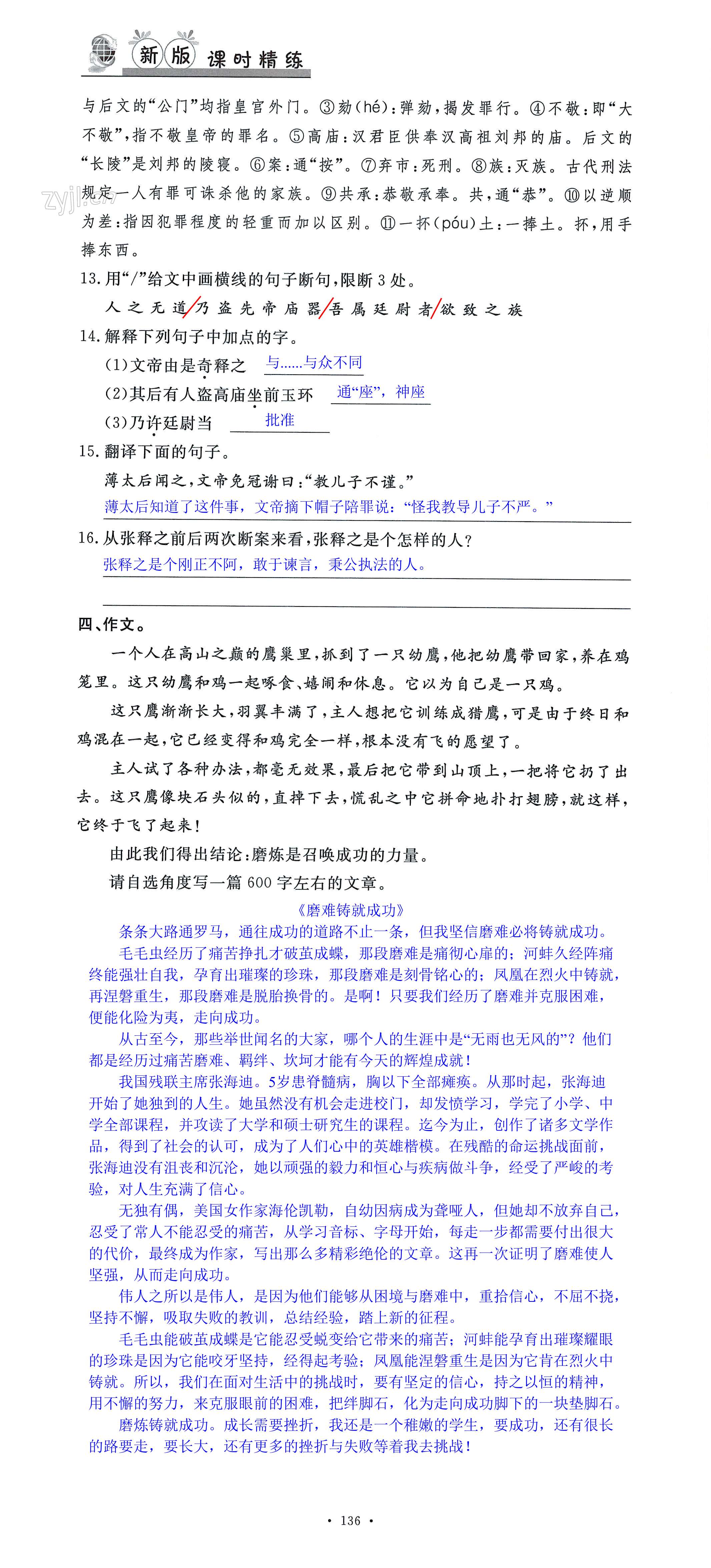 注:目前有些书本章节名称可能整理的还不是很完善,但都是按照顺序排列的,请同学们按照顺序仔细查找。练习册 2022年课时精练九年级语文全一册人教版 答案主要是用来给同学们做完题方便对答案用的,请勿直接抄袭。