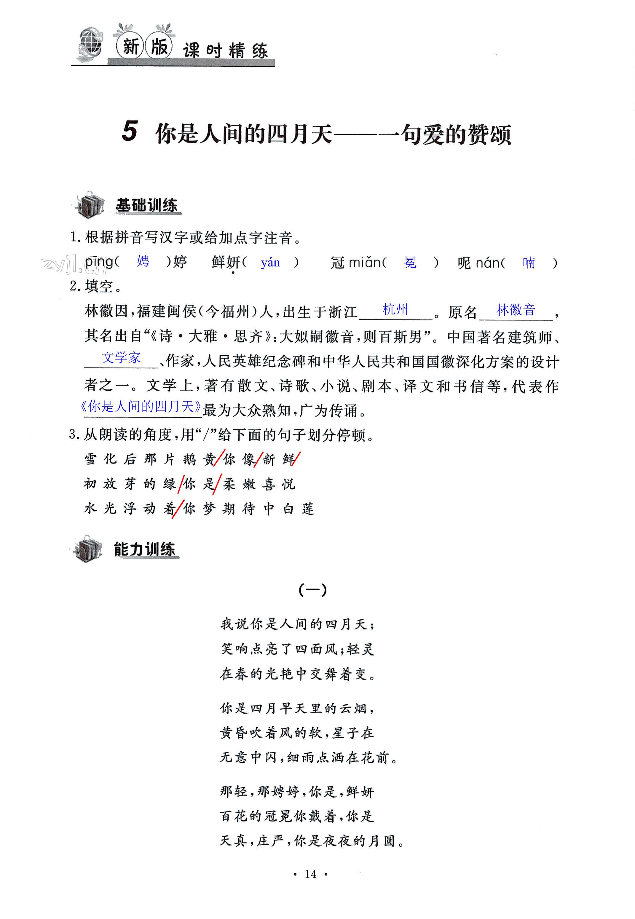 注:目前有些书本章节名称可能整理的还不是很完善,但都是按照顺序排列的,请同学们按照顺序仔细查找。练习册 2022年课时精练九年级语文全一册人教版 答案主要是用来给同学们做完题方便对答案用的,请勿直接抄袭。