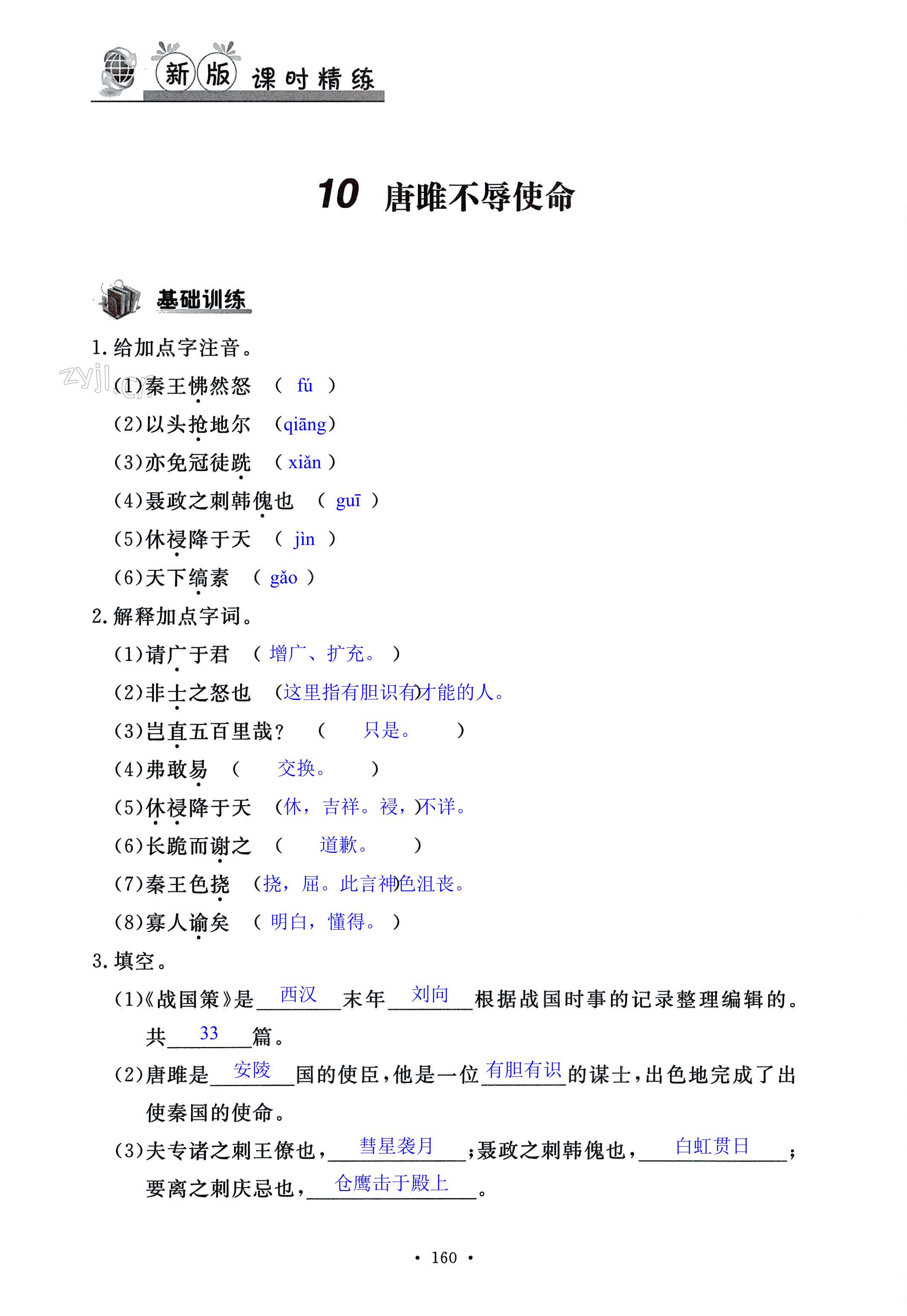 注:目前有些书本章节名称可能整理的还不是很完善,但都是按照顺序排列的,请同学们按照顺序仔细查找。练习册 2022年课时精练九年级语文全一册人教版 答案主要是用来给同学们做完题方便对答案用的,请勿直接抄袭。