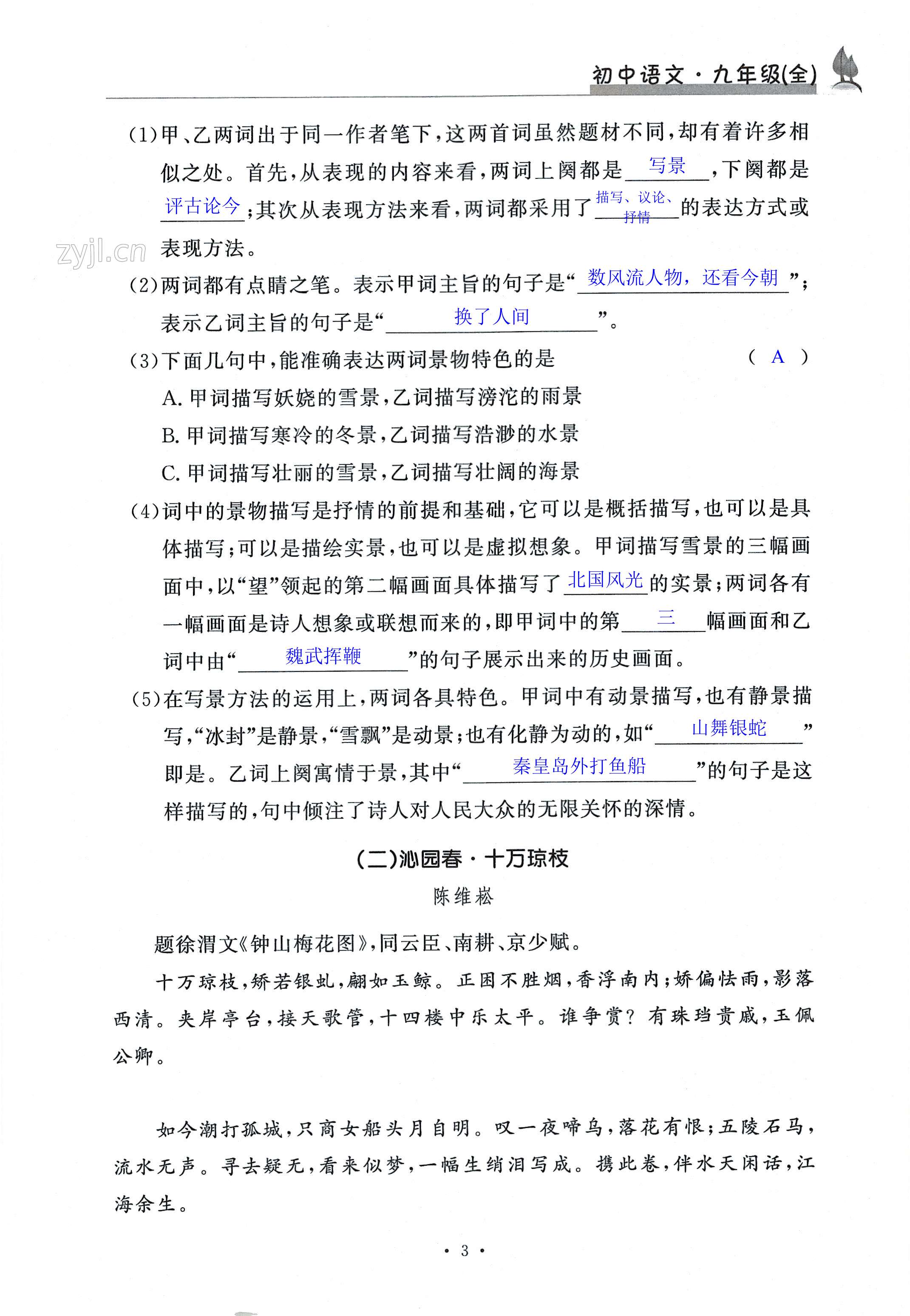 注:目前有些书本章节名称可能整理的还不是很完善,但都是按照顺序排列的,请同学们按照顺序仔细查找。练习册 2022年课时精练九年级语文全一册人教版 答案主要是用来给同学们做完题方便对答案用的,请勿直接抄袭。