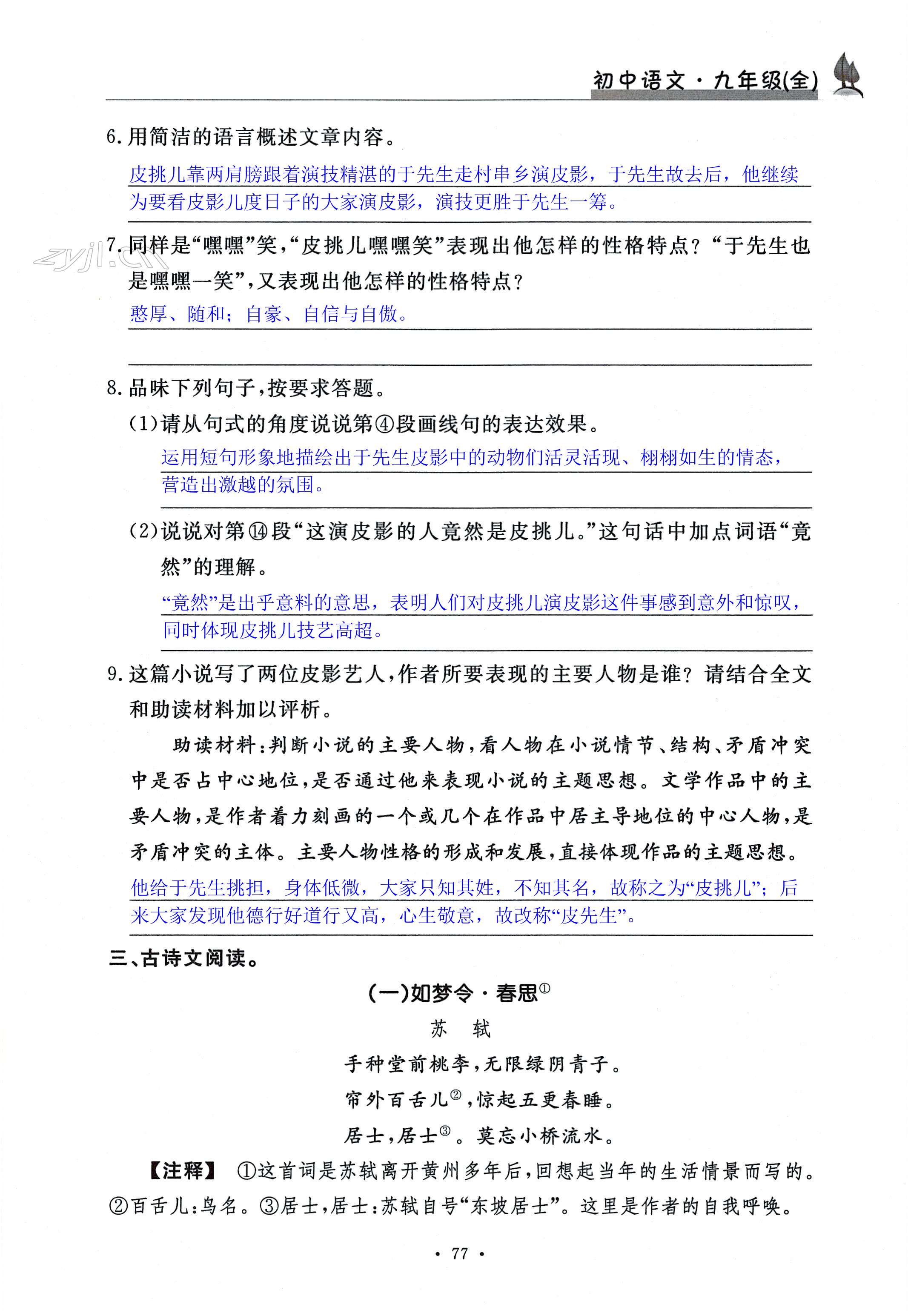 注:目前有些书本章节名称可能整理的还不是很完善,但都是按照顺序排列的,请同学们按照顺序仔细查找。练习册 2022年课时精练九年级语文全一册人教版 答案主要是用来给同学们做完题方便对答案用的,请勿直接抄袭。