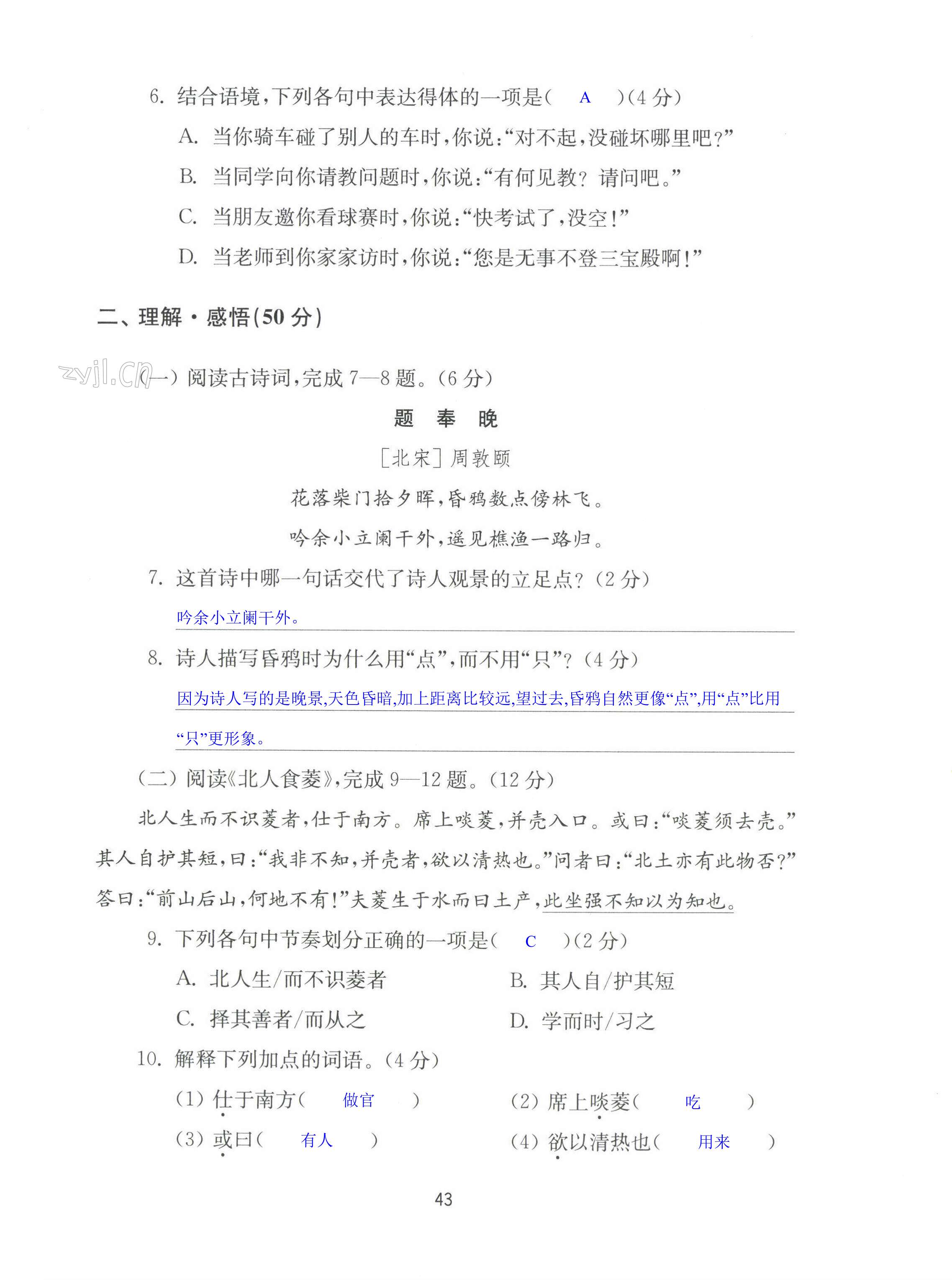 注:目前有些书本章节名称可能整理的还不是很完善,但都是按照顺序排列的,请同学们按照顺序仔细查找。练习册 2022年学业提优检测七年级语文数学英语上册 答案主要是用来给同学们做完题方便对答案用的,请勿直接抄袭。