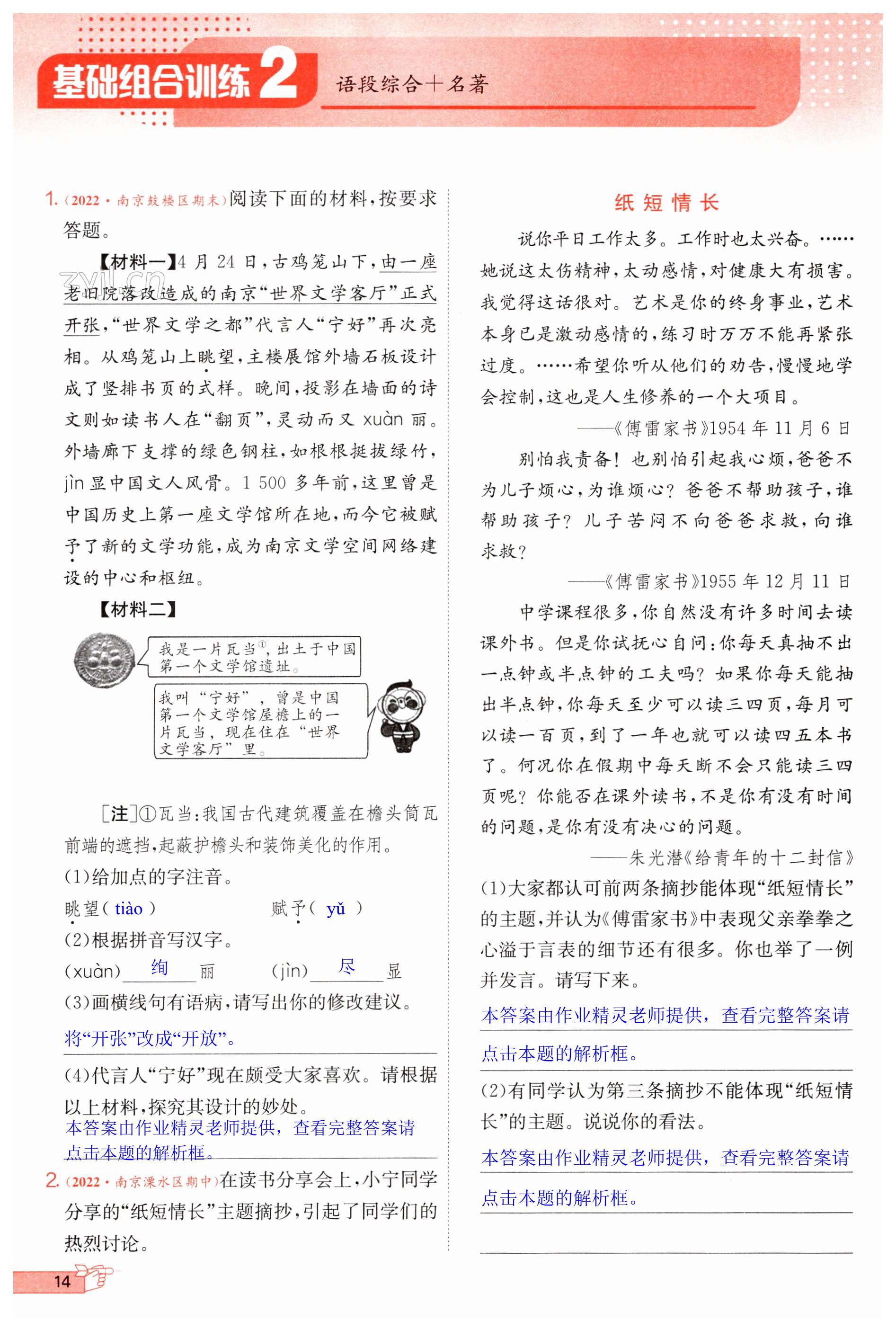 注:目前有些书本章节名称可能整理的还不是很完善,但都是按照顺序排列的,请同学们按照顺序仔细查找。练习册 2023年实验班提优训练八年级语文下册人教版江苏专版 答案主要是用来给同学们做完题方便对答案用的,请勿直接抄袭。