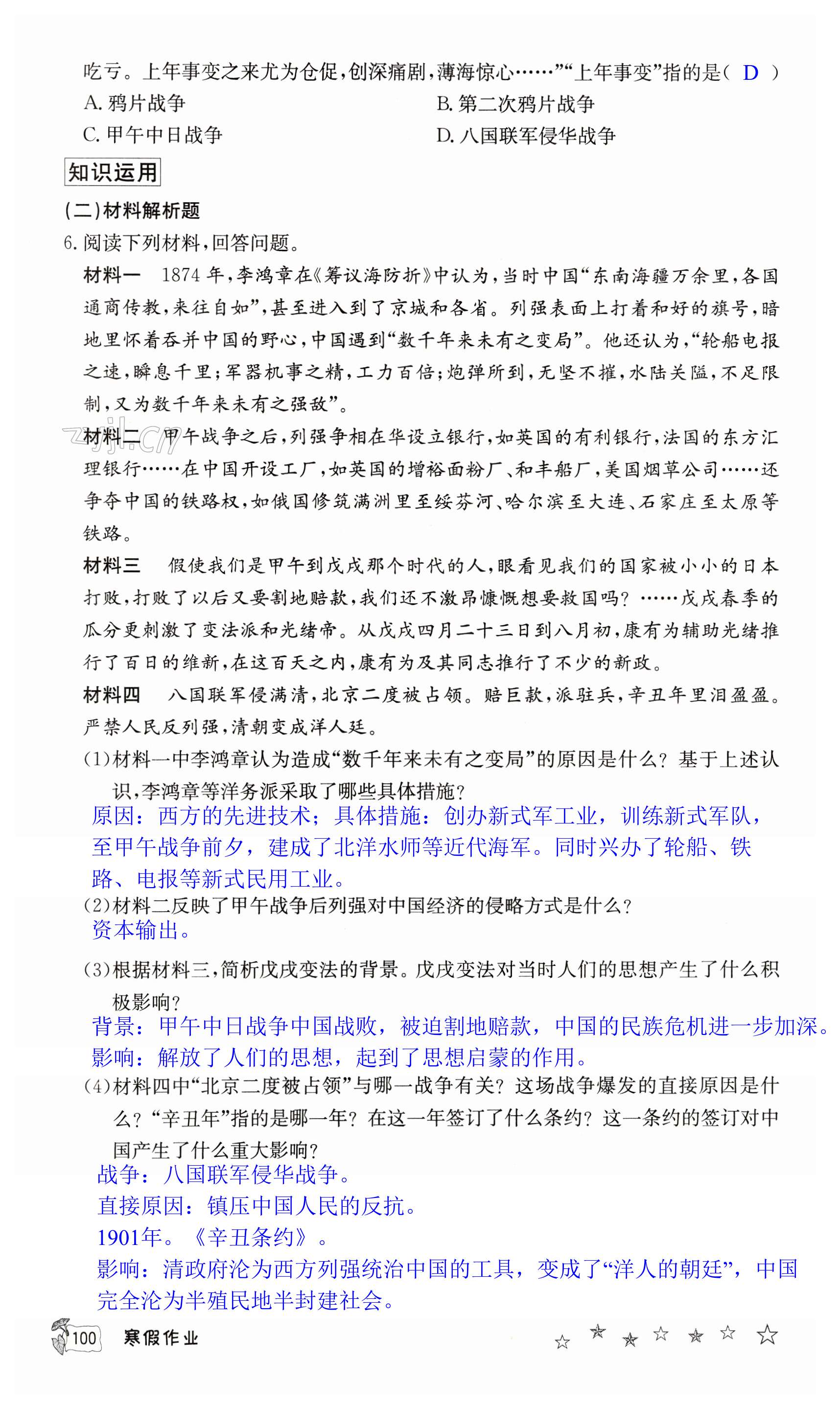 注:目前有些书本章节名称可能整理的还不是很完善,但都是按照顺序排列的,请同学们按照顺序仔细查找。练习册 2023年寒假作业延边教育出版社八年级合订本A版河南专版 答案主要是用来给同学们做完题方便对答案用的,请勿直接抄袭。