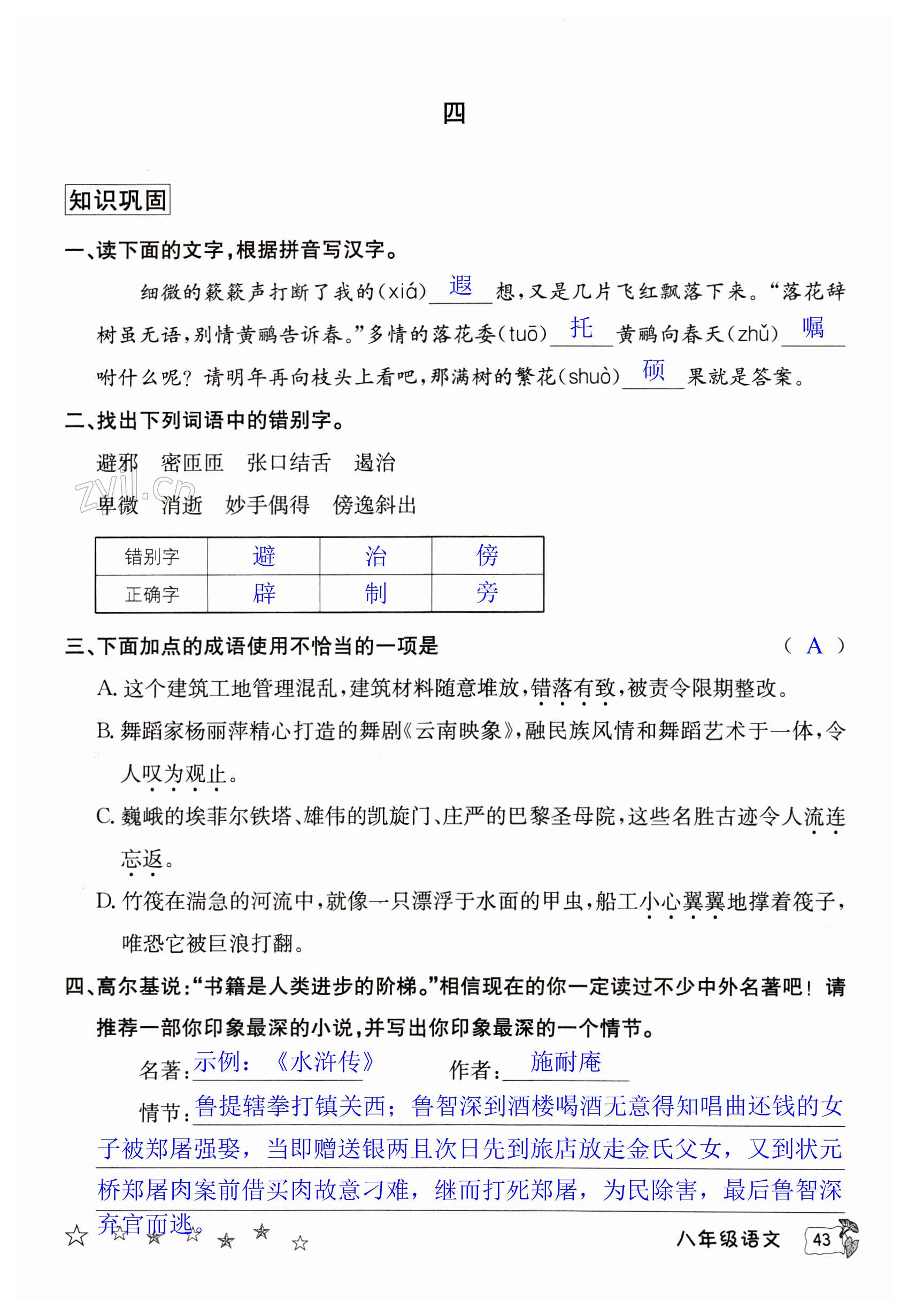 注:目前有些书本章节名称可能整理的还不是很完善,但都是按照顺序排列的,请同学们按照顺序仔细查找。练习册 2023年寒假作业延边教育出版社八年级合订本A版河南专版 答案主要是用来给同学们做完题方便对答案用的,请勿直接抄袭。