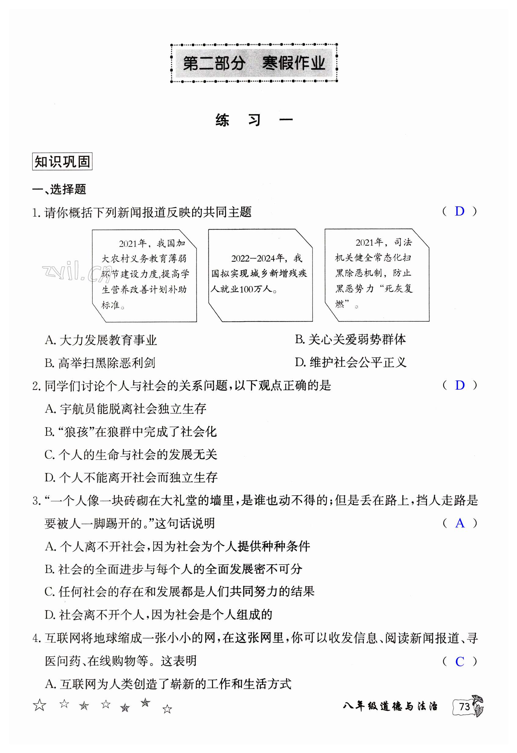 注:目前有些书本章节名称可能整理的还不是很完善,但都是按照顺序排列的,请同学们按照顺序仔细查找。练习册 2023年寒假作业延边教育出版社八年级合订本A版河南专版 答案主要是用来给同学们做完题方便对答案用的,请勿直接抄袭。