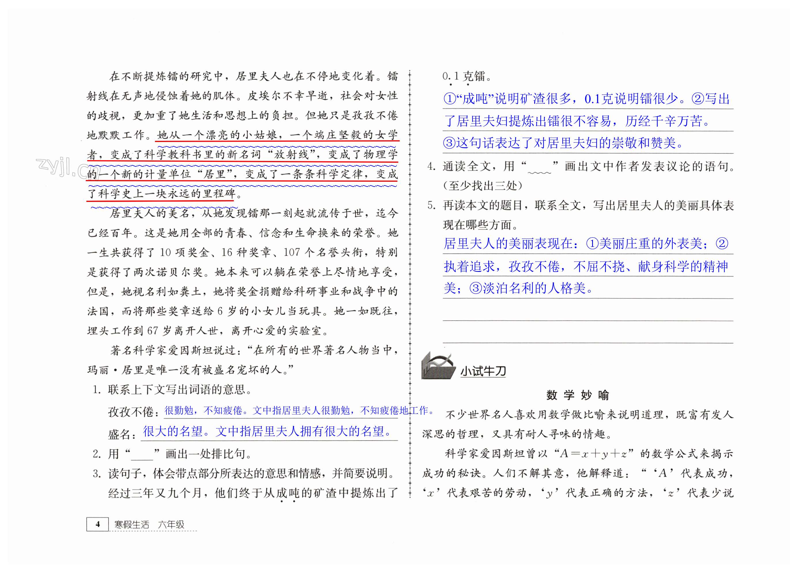 注:目前有些书本章节名称可能整理的还不是很完善,但都是按照顺序排列的,请同学们按照顺序仔细查找。练习册 2023年寒假生活六年级教育科学出版社 答案主要是用来给同学们做完题方便对答案用的,请勿直接抄袭。