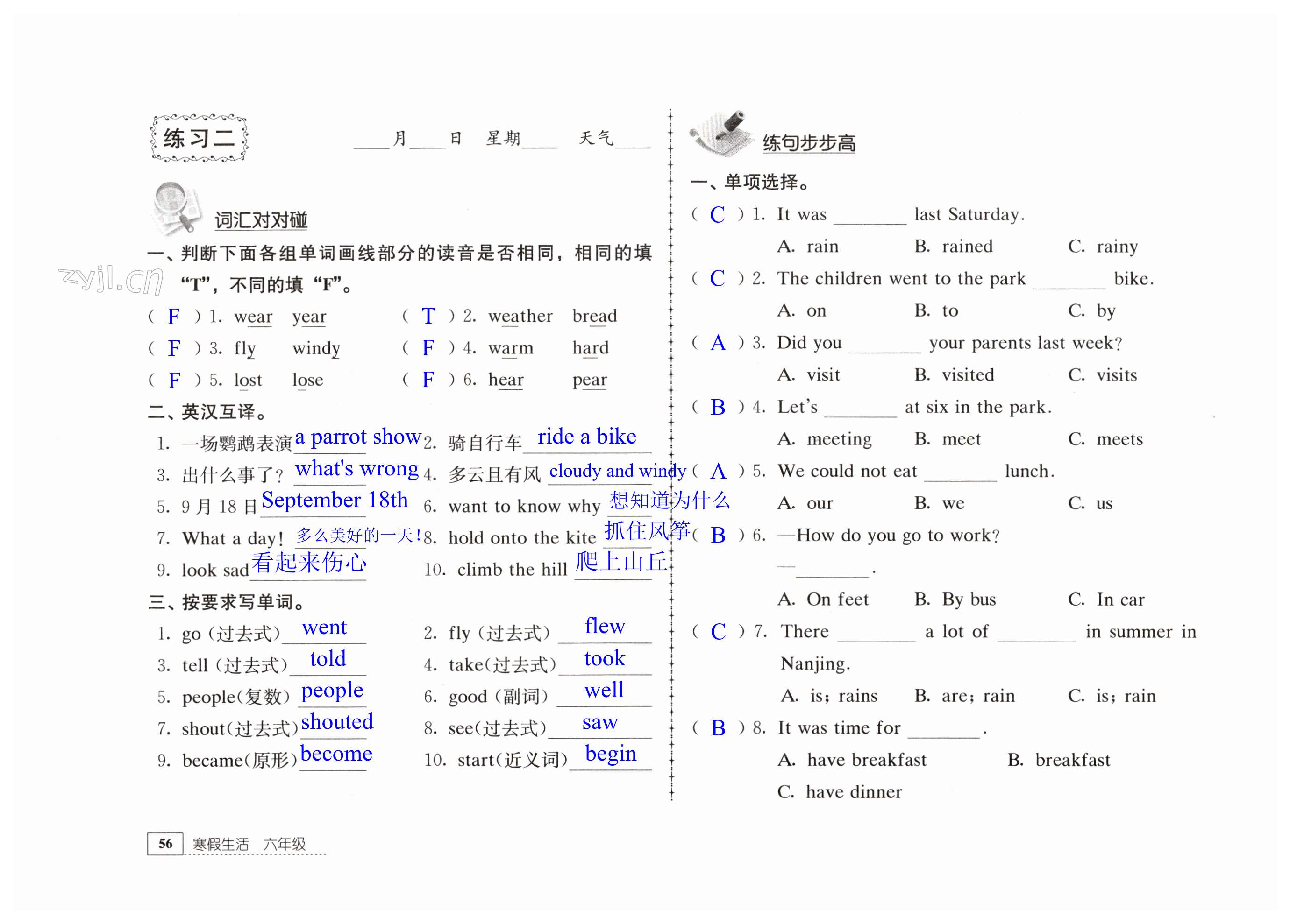 注:目前有些书本章节名称可能整理的还不是很完善,但都是按照顺序排列的,请同学们按照顺序仔细查找。练习册 2023年寒假生活六年级教育科学出版社 答案主要是用来给同学们做完题方便对答案用的,请勿直接抄袭。