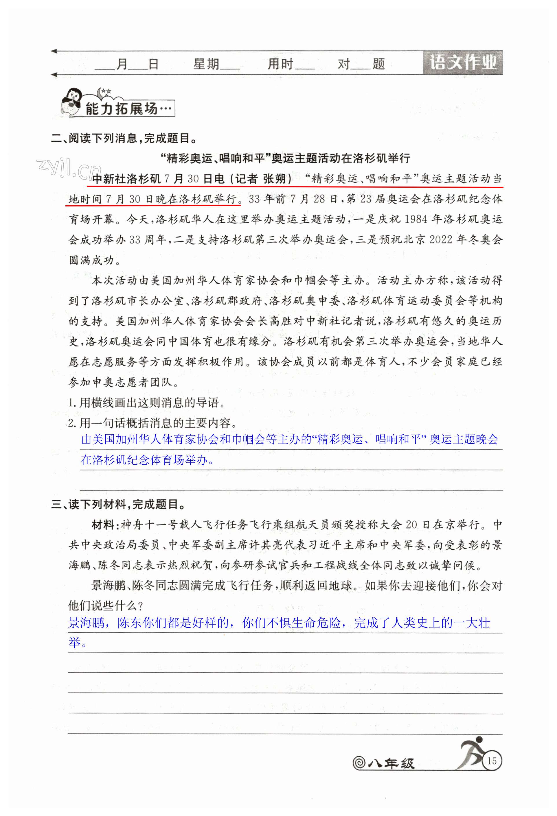 注:目前有些书本章节名称可能整理的还不是很完善,但都是按照顺序排列的,请同学们按照顺序仔细查找。练习册 2023年快乐假期寒假作业八年级语数英物合订本人教版 答案主要是用来给同学们做完题方便对答案用的,请勿直接抄袭。