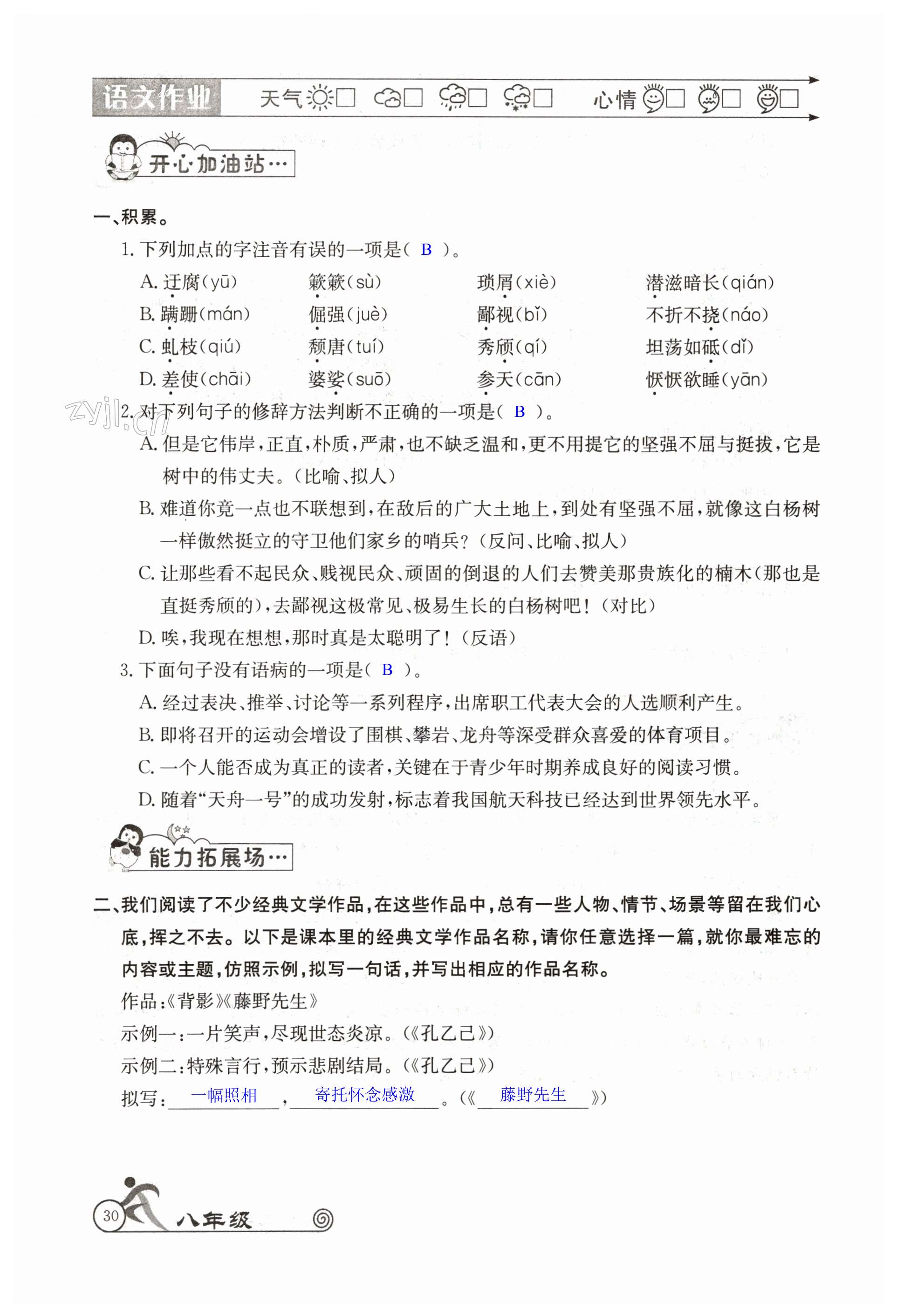注:目前有些书本章节名称可能整理的还不是很完善,但都是按照顺序排列的,请同学们按照顺序仔细查找。练习册 2023年快乐假期寒假作业八年级语数英物合订本人教版 答案主要是用来给同学们做完题方便对答案用的,请勿直接抄袭。