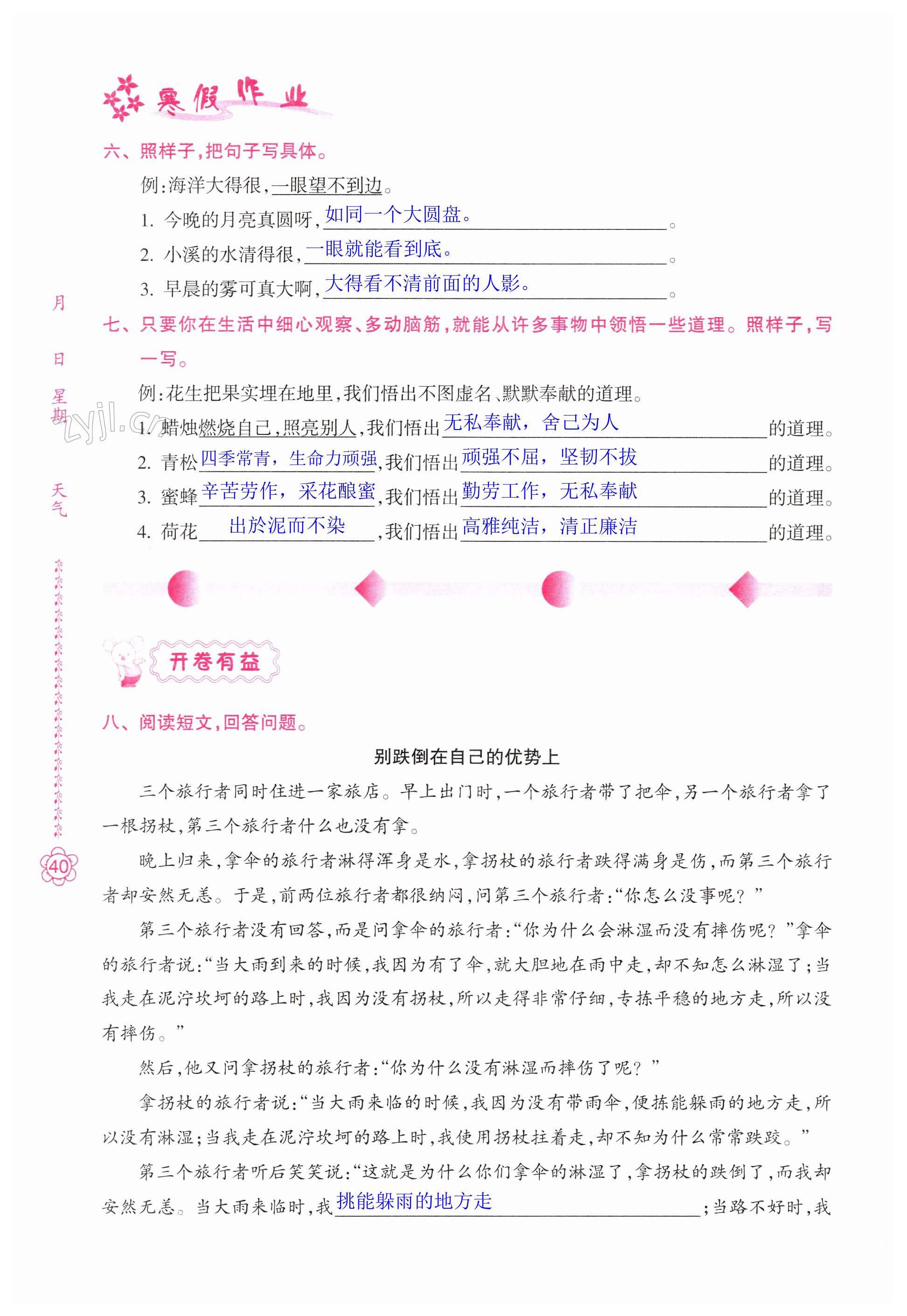 注:目前有些书本章节名称可能整理的还不是很完善,但都是按照顺序排列的,请同学们按照顺序仔细查找。练习册 2023年寒假作业南方日报出版社五年级数学北师大版B 答案主要是用来给同学们做完题方便对答案用的,请勿直接抄袭。