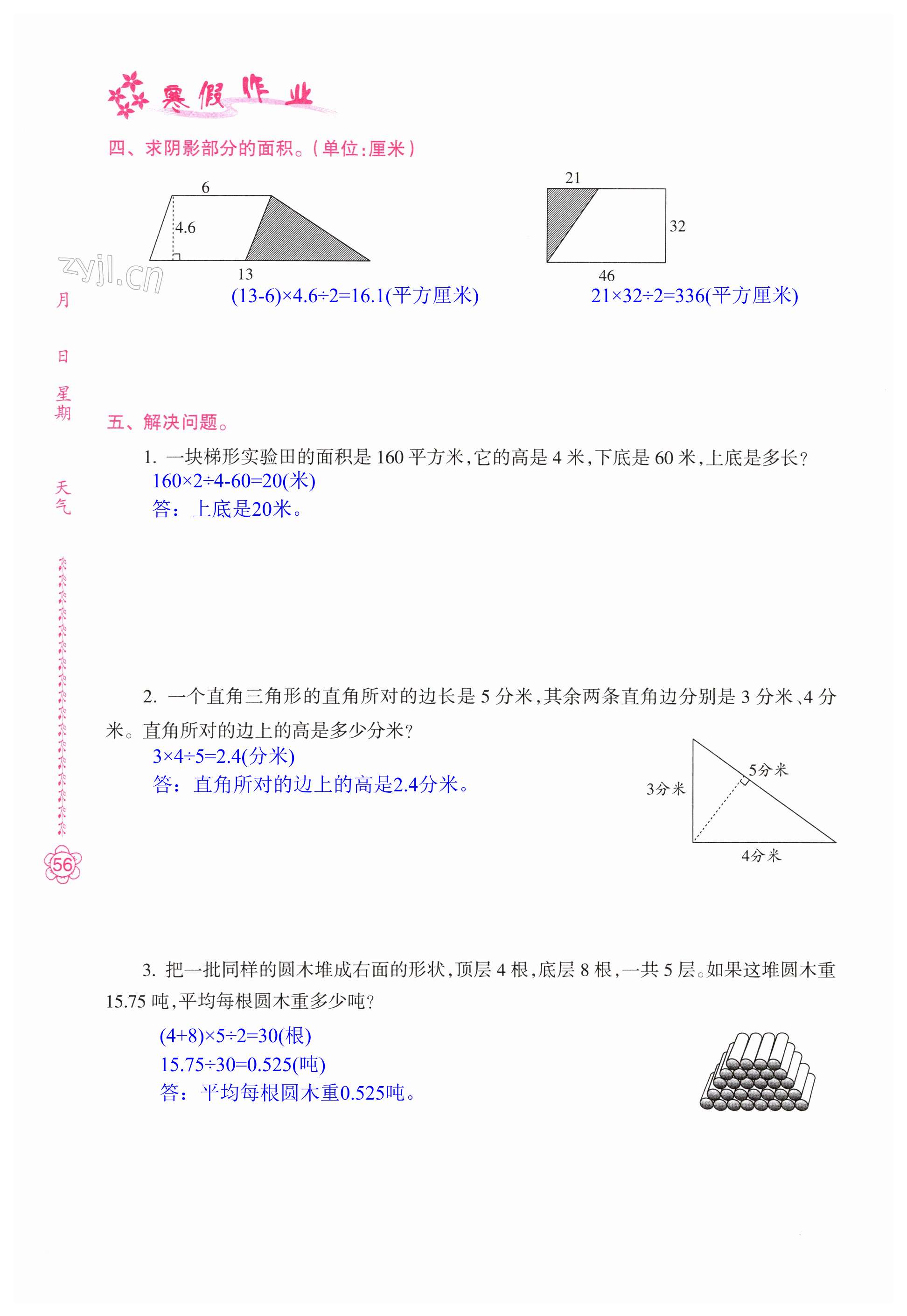 2023年寒假作业南方日报出版社五年级数学北师大版B