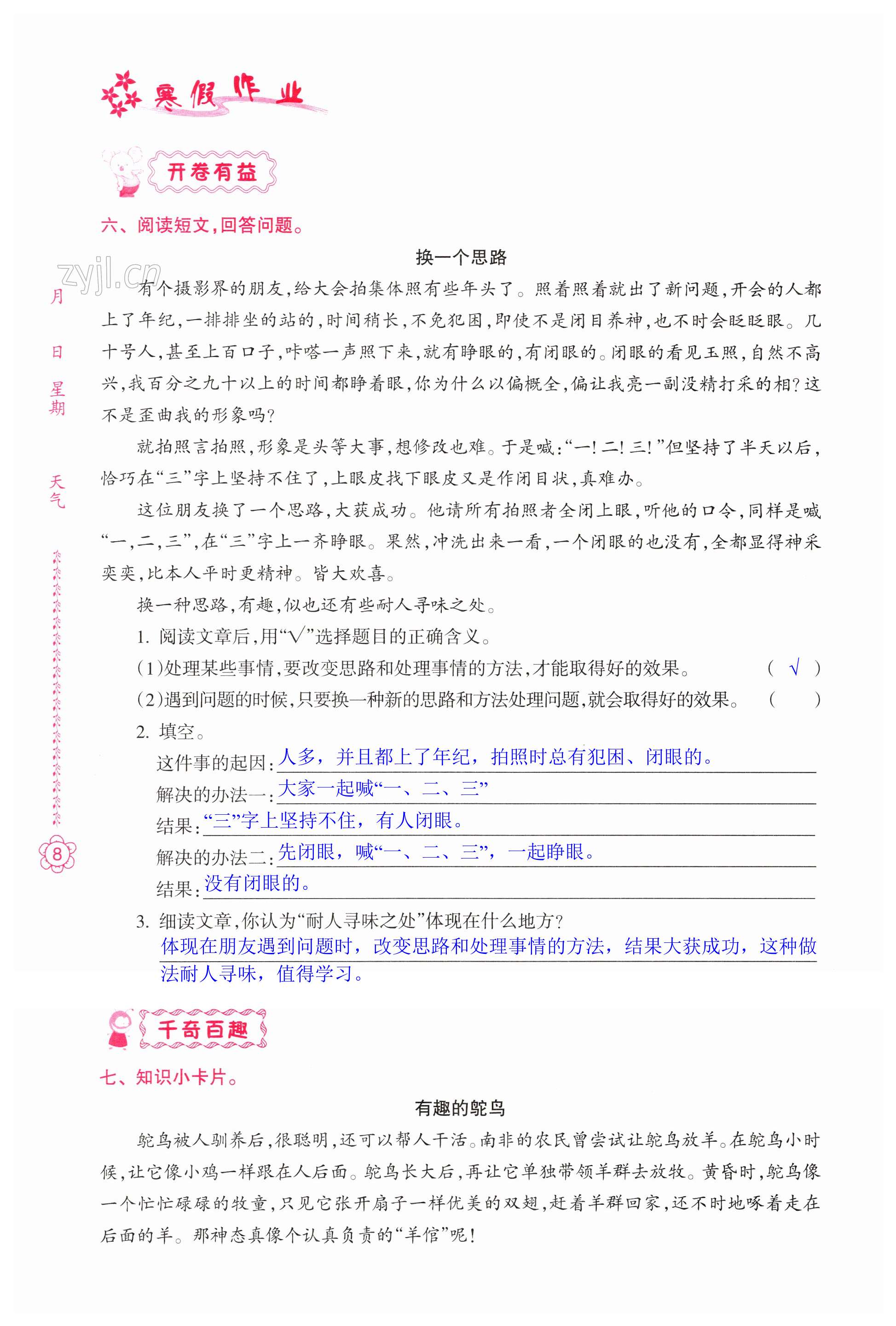注:目前有些书本章节名称可能整理的还不是很完善,但都是按照顺序排列的,请同学们按照顺序仔细查找。练习册 2023年寒假作业南方日报出版社五年级数学北师大版B 答案主要是用来给同学们做完题方便对答案用的,请勿直接抄袭。