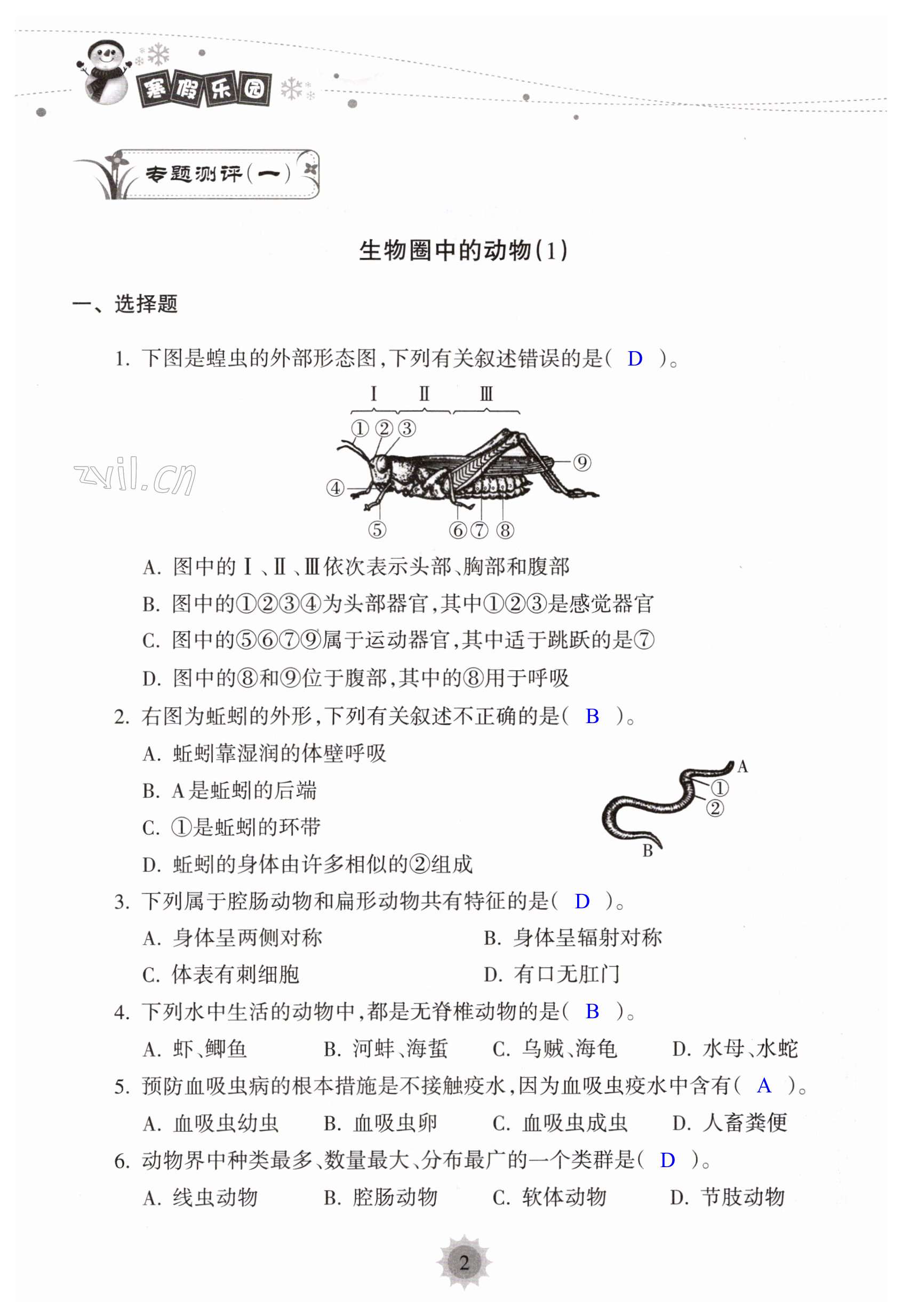 注:目前有些书本章节名称可能整理的还不是很完善,但都是按照顺序排列的,请同学们按照顺序仔细查找。练习册 2023年寒假乐园八年级生物人教版海南出版社 答案主要是用来给同学们做完题方便对答案用的,请勿直接抄袭。
