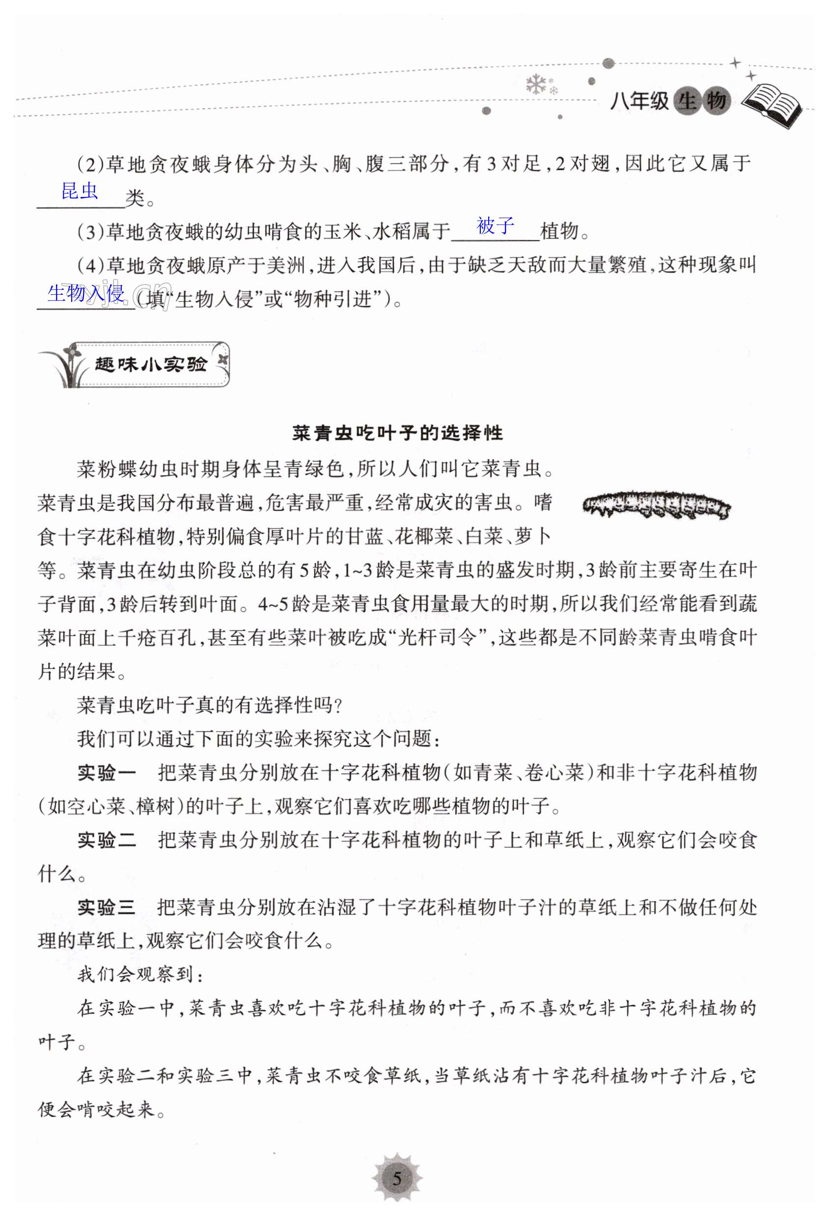 注:目前有些书本章节名称可能整理的还不是很完善,但都是按照顺序排列的,请同学们按照顺序仔细查找。练习册 2023年寒假乐园八年级生物人教版海南出版社 答案主要是用来给同学们做完题方便对答案用的,请勿直接抄袭。