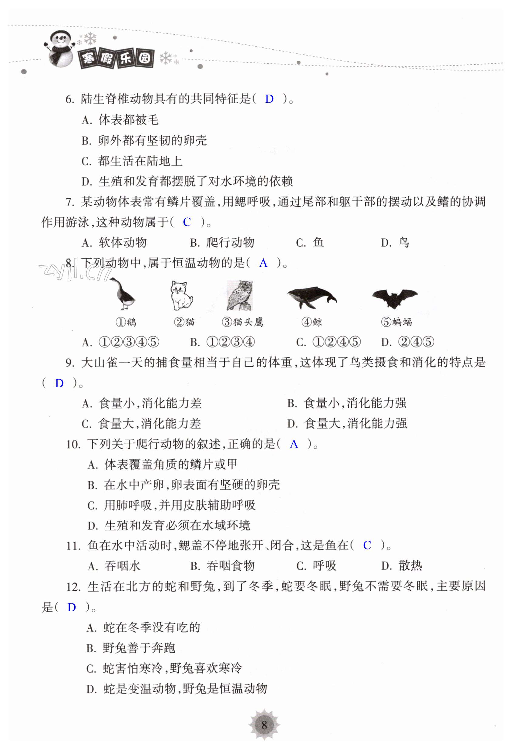 注:目前有些书本章节名称可能整理的还不是很完善,但都是按照顺序排列的,请同学们按照顺序仔细查找。练习册 2023年寒假乐园八年级生物人教版海南出版社 答案主要是用来给同学们做完题方便对答案用的,请勿直接抄袭。