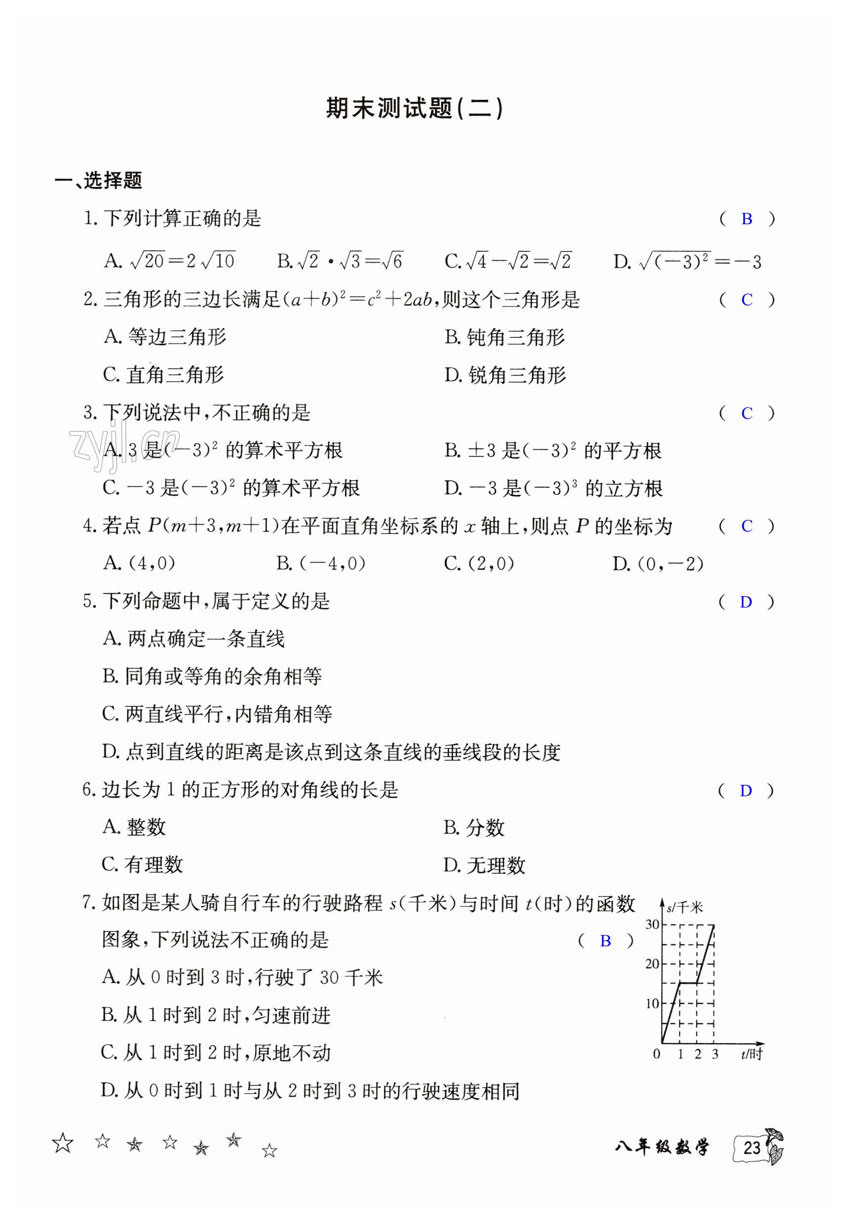 注:目前有些书本章节名称可能整理的还不是很完善,但都是按照顺序排列的,请同学们按照顺序仔细查找。练习册 2023年寒假作业延边教育出版社八年级数学北师大版河南专版 答案主要是用来给同学们做完题方便对答案用的,请勿直接抄袭。