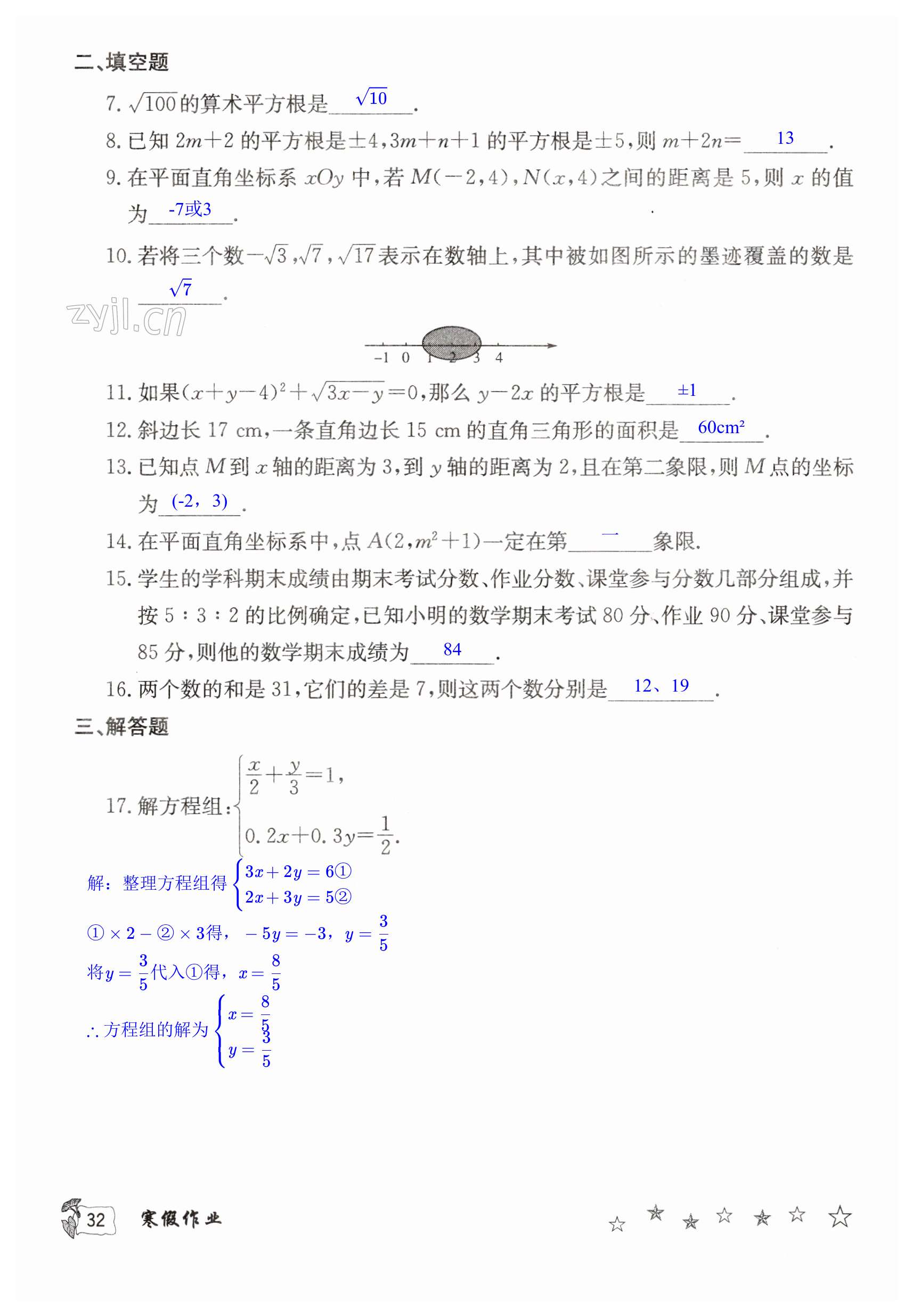 2023年寒假作业延边教育出版社八年级数学北师大版河南专版