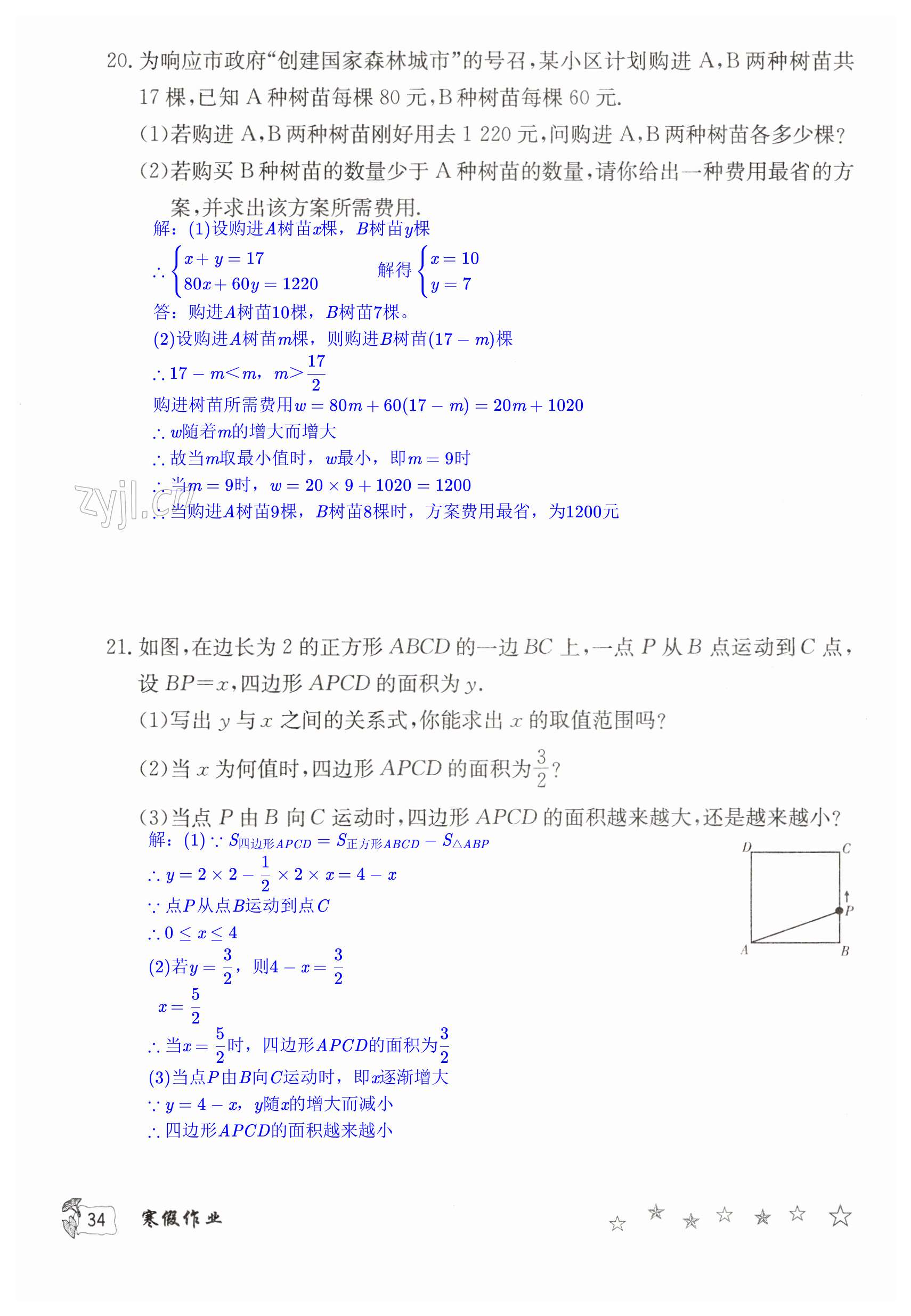 2023年寒假作业延边教育出版社八年级数学北师大版河南专版