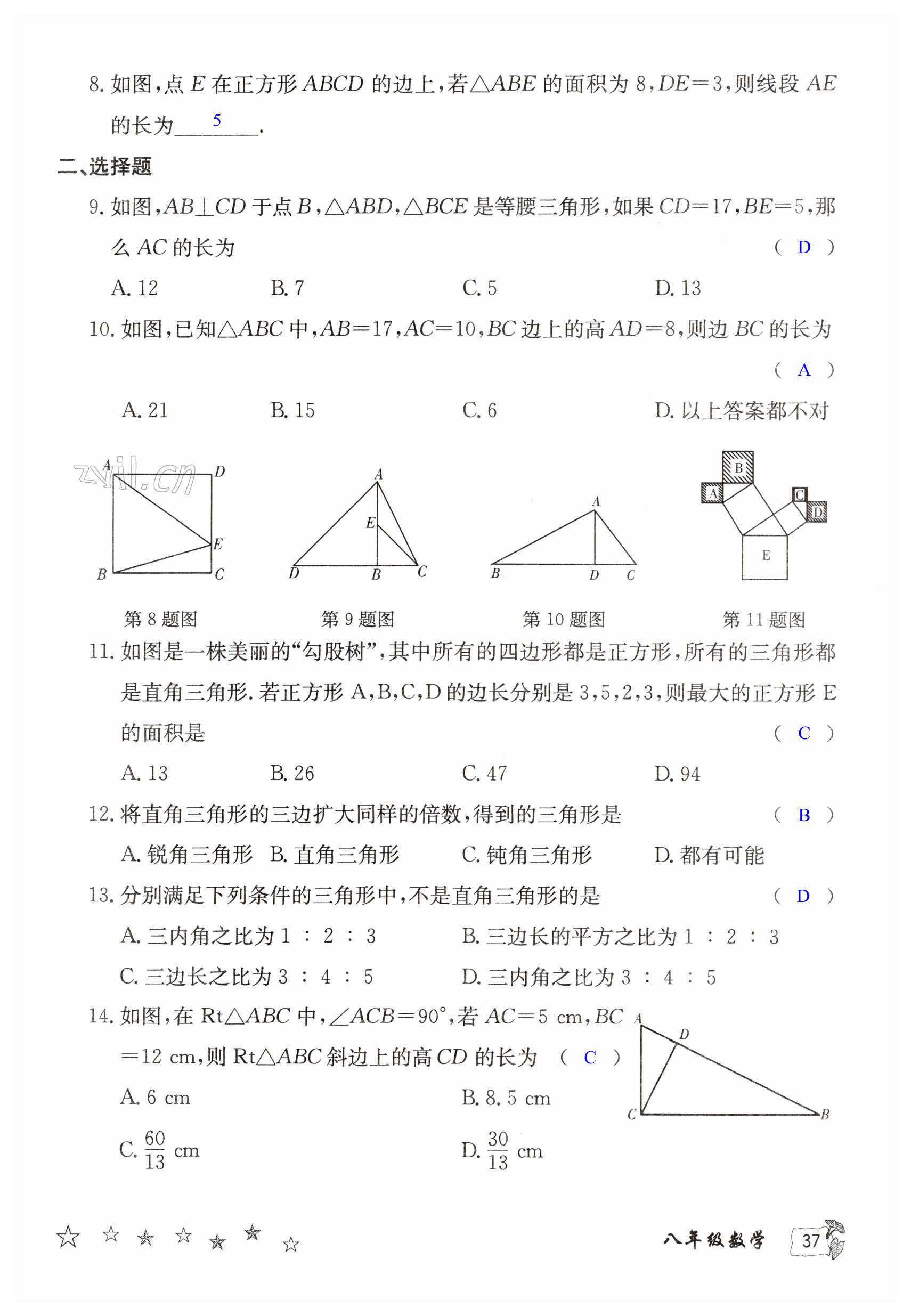 注:目前有些书本章节名称可能整理的还不是很完善,但都是按照顺序排列的,请同学们按照顺序仔细查找。练习册 2023年寒假作业延边教育出版社八年级数学北师大版河南专版 答案主要是用来给同学们做完题方便对答案用的,请勿直接抄袭。