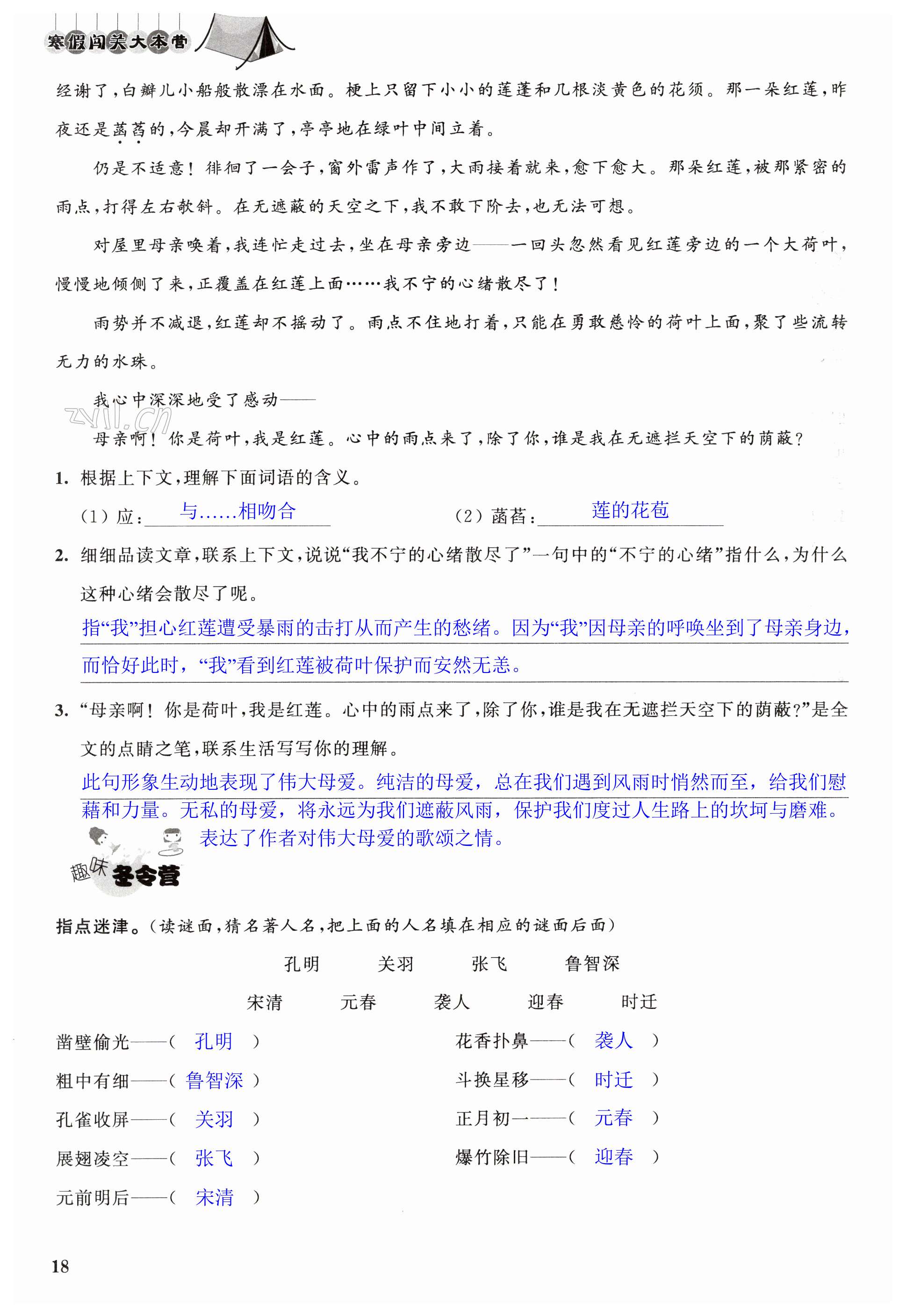 注:目前有些书本章节名称可能整理的还不是很完善,但都是按照顺序排列的,请同学们按照顺序仔细查找。练习册 2023年寒假闯关大本营六年级语文 答案主要是用来给同学们做完题方便对答案用的,请勿直接抄袭。