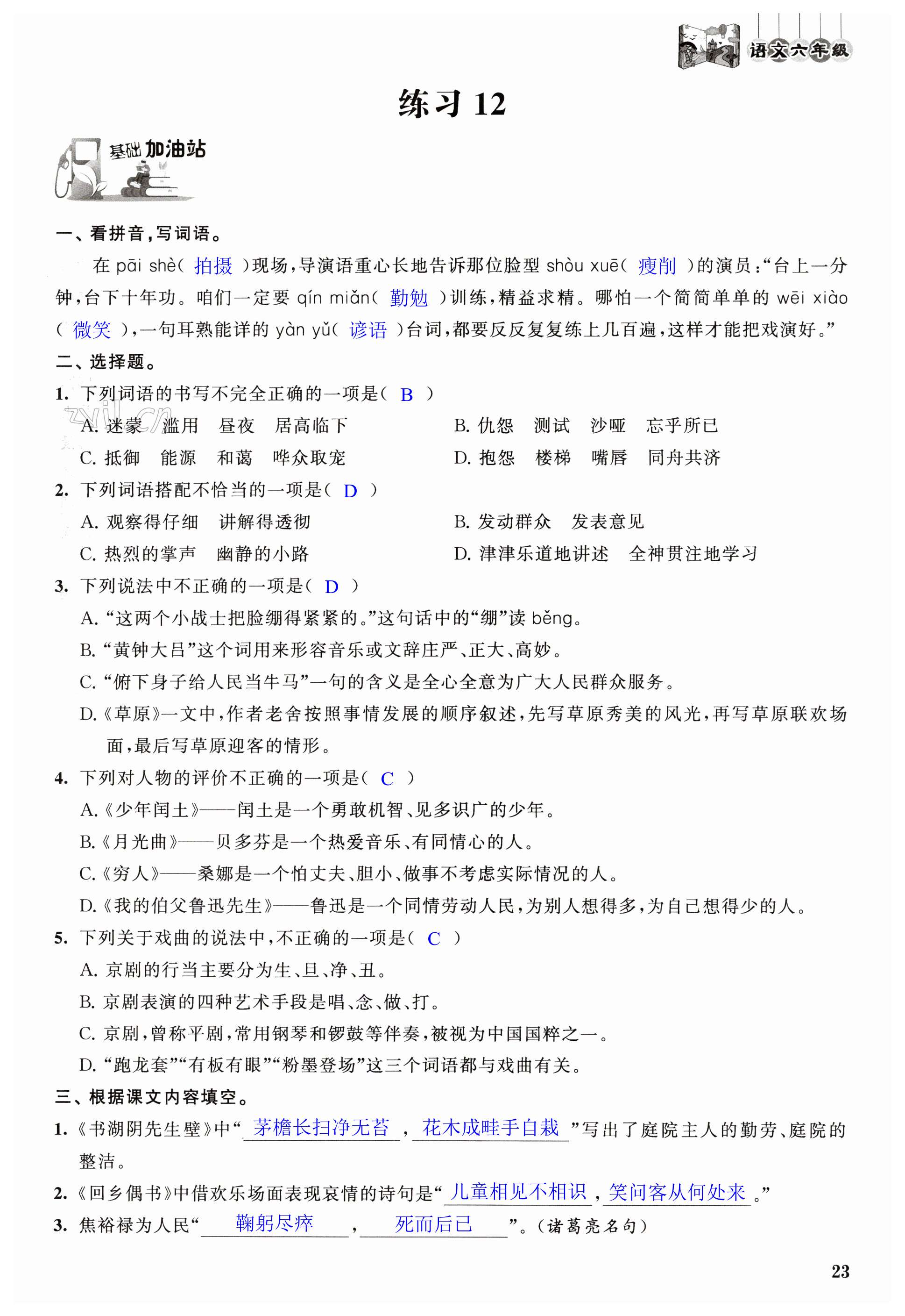 注:目前有些书本章节名称可能整理的还不是很完善,但都是按照顺序排列的,请同学们按照顺序仔细查找。练习册 2023年寒假闯关大本营六年级语文 答案主要是用来给同学们做完题方便对答案用的,请勿直接抄袭。