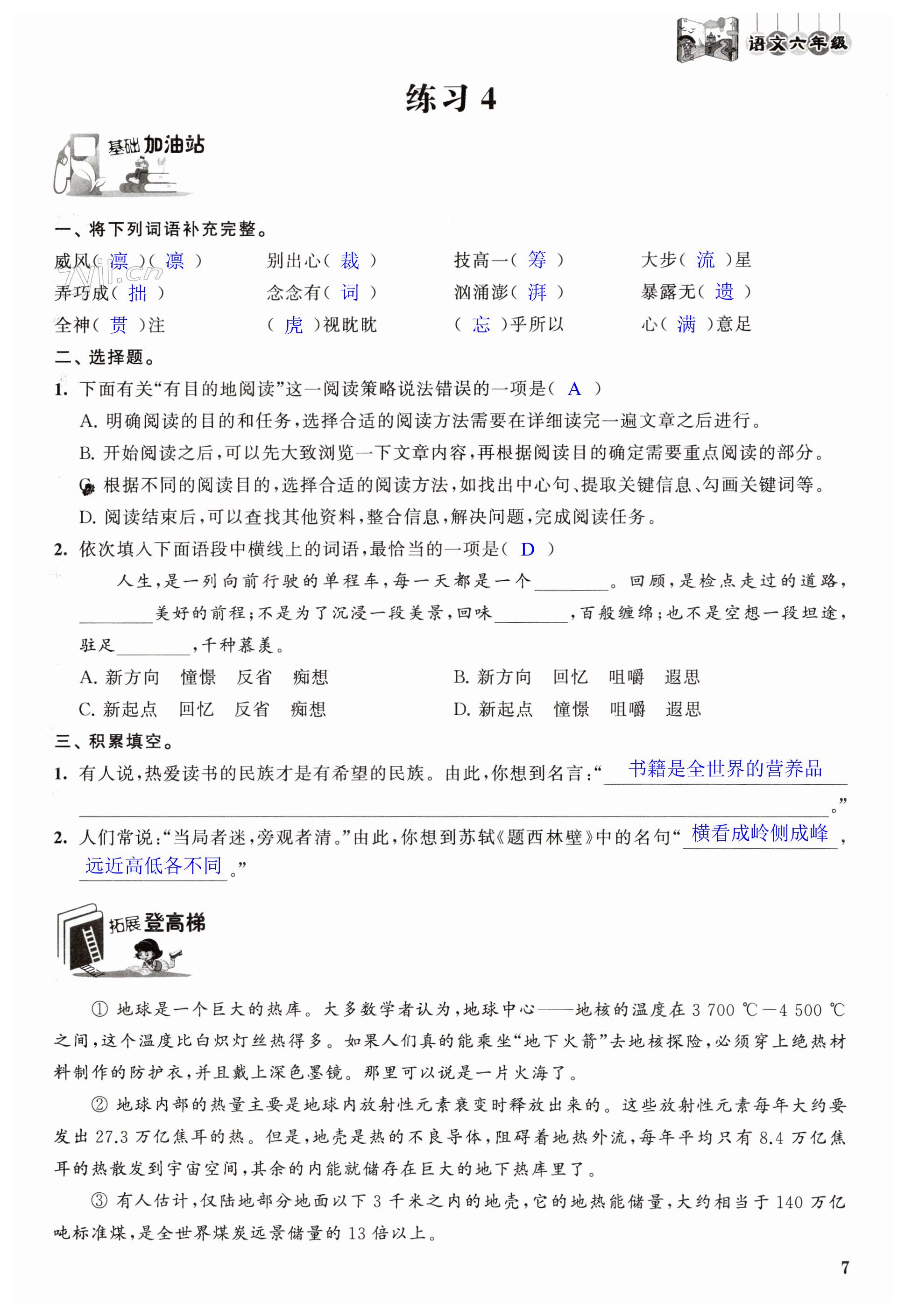 注:目前有些书本章节名称可能整理的还不是很完善,但都是按照顺序排列的,请同学们按照顺序仔细查找。练习册 2023年寒假闯关大本营六年级语文 答案主要是用来给同学们做完题方便对答案用的,请勿直接抄袭。