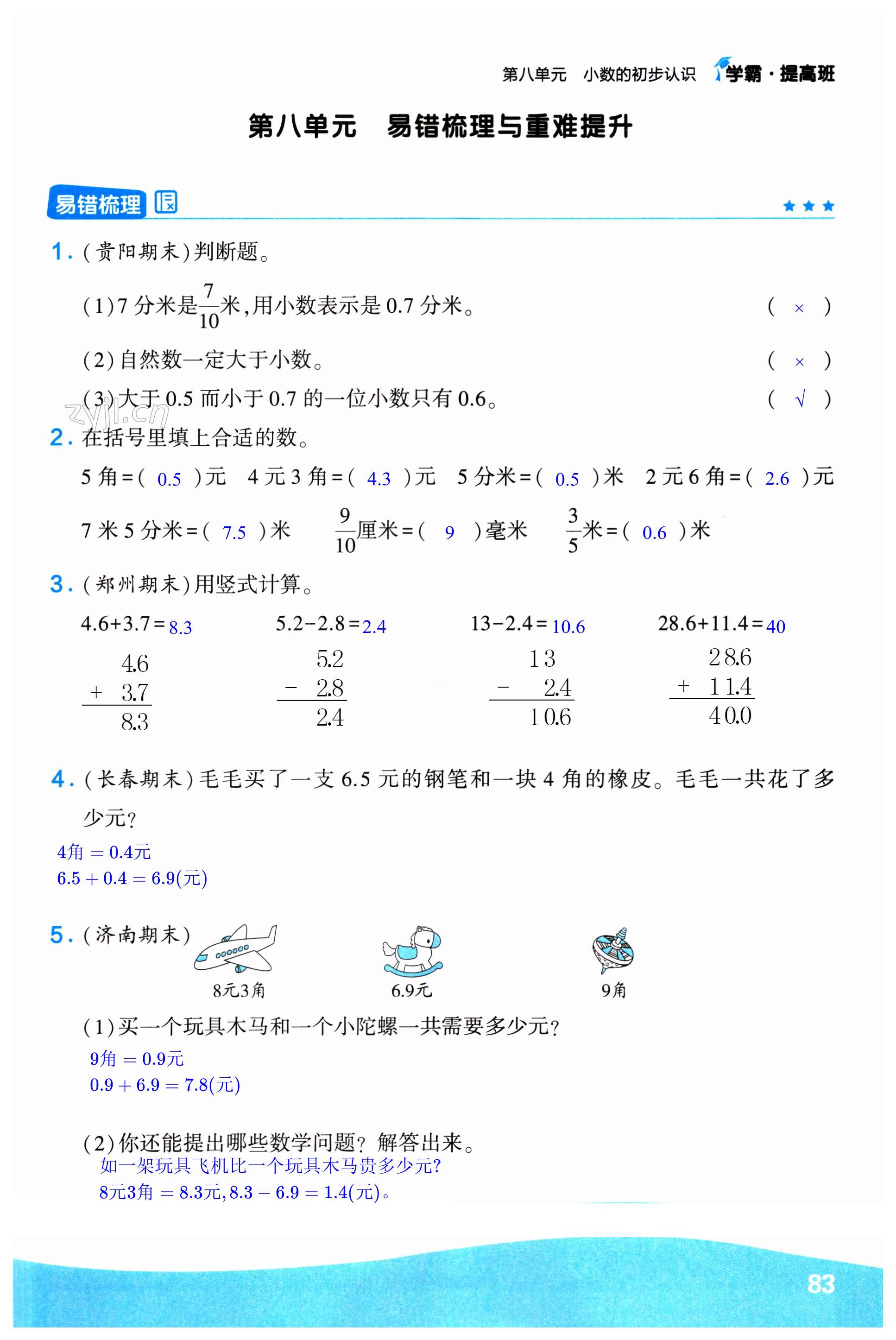 注:目前有些书本章节名称可能整理的还不是很完善,但都是按照顺序排列的,请同学们按照顺序仔细查找。练习册 2023年经纶学典提高班三年级数学下册苏教版江苏专版 答案主要是用来给同学们做完题方便对答案用的,请勿直接抄袭。