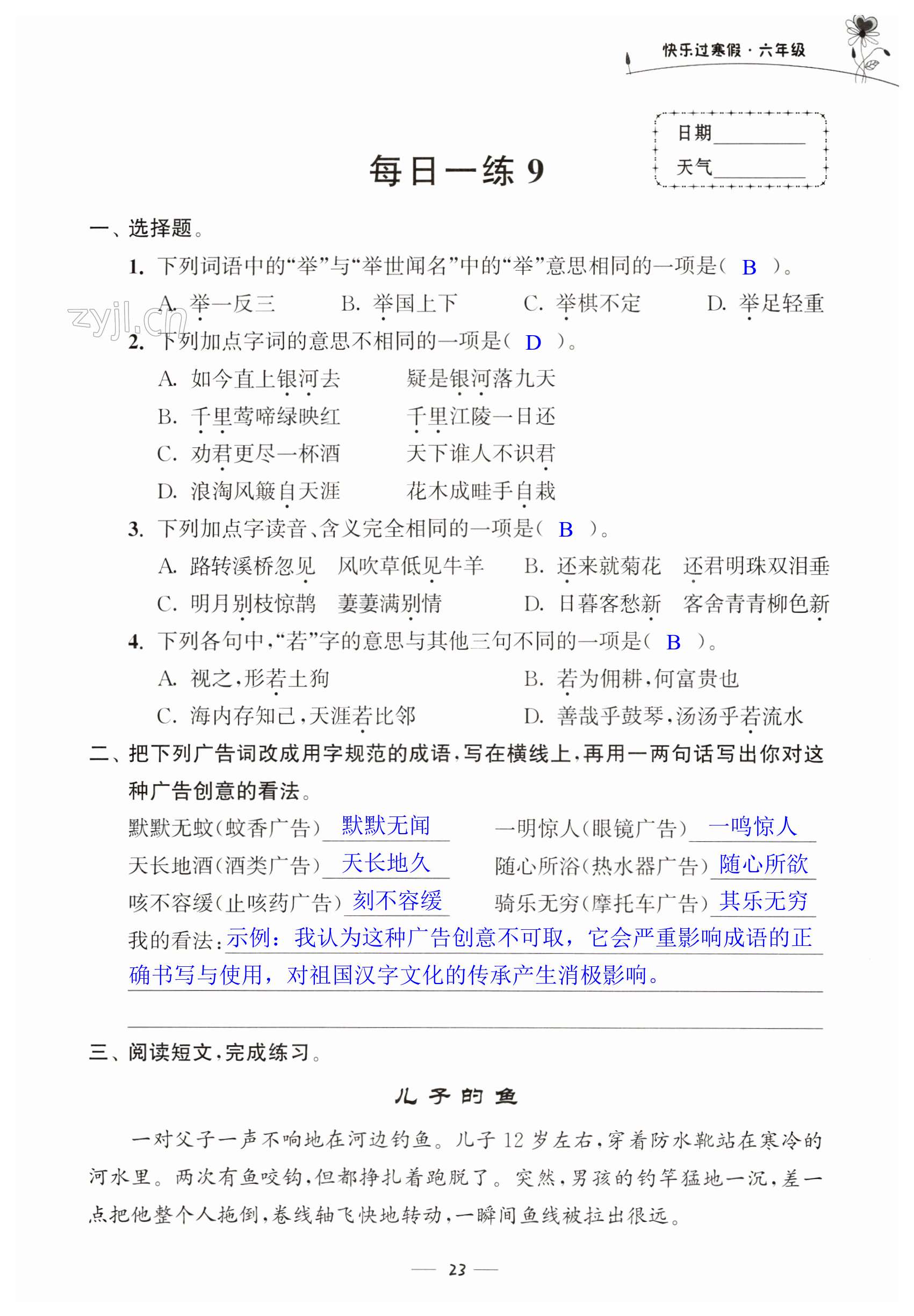 注:目前有些书本章节名称可能整理的还不是很完善,但都是按照顺序排列的,请同学们按照顺序仔细查找。练习册 2023年快乐过寒假江苏凤凰美术出版社六年级 答案主要是用来给同学们做完题方便对答案用的,请勿直接抄袭。